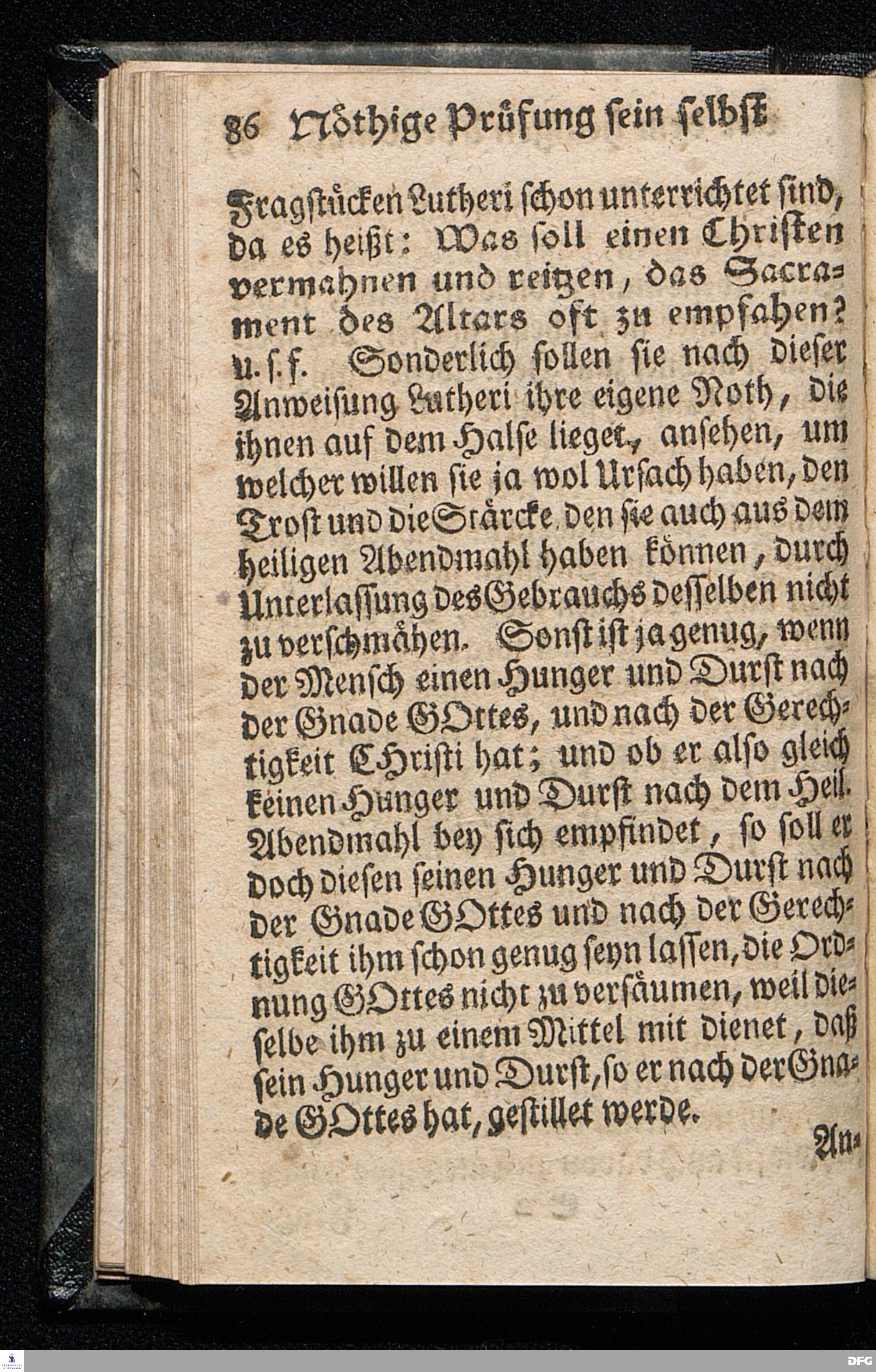 Die nöthige Prüfung sein selbst vor dem Gebrauch des Heiligen Abendmahls / Nach Anleitung der Epistol.Lection 1.Cor.IX [vielm.XI !], v.23 u.s.f. An dem so genannten Grünen Donnerstage Anno 1712. In der St.Georgen Kirche zu Glaucha an Halle vorgestellet, Und insonderheit mit zu einem Unterricht für diejenige, so sich aus mancherley Ursachen vom H.Abendmahl enthalten, gerichtet von August Hermann Francken / S.Th.P.O. & Past.zu St.Ulrich, u. des Gymn.Schol. Die fünfte Edition. Dabey ein Anhang von der unterschiedenen Beschaffenheit der würdigen Communicanten vom Autore zu Nürnberg vorgestellet den 6ten Mart. anno 1718. Der Jugend in den Schulen des Wäysen=Hauses nach gehaltenem Herbst=Examine ausgetheilet. HALLE, in Verlegung des Wäysenhauses, 1728.