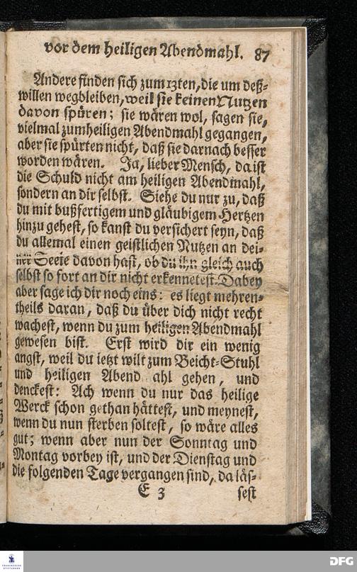 Die nöthige Prüfung sein selbst vor dem Gebrauch des Heiligen Abendmahls / Nach Anleitung der Epistol.Lection 1.Cor.IX [vielm.XI !], v.23 u.s.f. An dem so genannten Grünen Donnerstage Anno 1712. In der St.Georgen Kirche zu Glaucha an Halle vorgestellet, Und insonderheit mit zu einem Unterricht für diejenige, so sich aus mancherley Ursachen vom H.Abendmahl enthalten, gerichtet von August Hermann Francken / S.Th.P.O. & Past.zu St.Ulrich, u. des Gymn.Schol. Die fünfte Edition. Dabey ein Anhang von der unterschiedenen Beschaffenheit der würdigen Communicanten vom Autore zu Nürnberg vorgestellet den 6ten Mart. anno 1718. Der Jugend in den Schulen des Wäysen=Hauses nach gehaltenem Herbst=Examine ausgetheilet. HALLE, in Verlegung des Wäysenhauses, 1728.