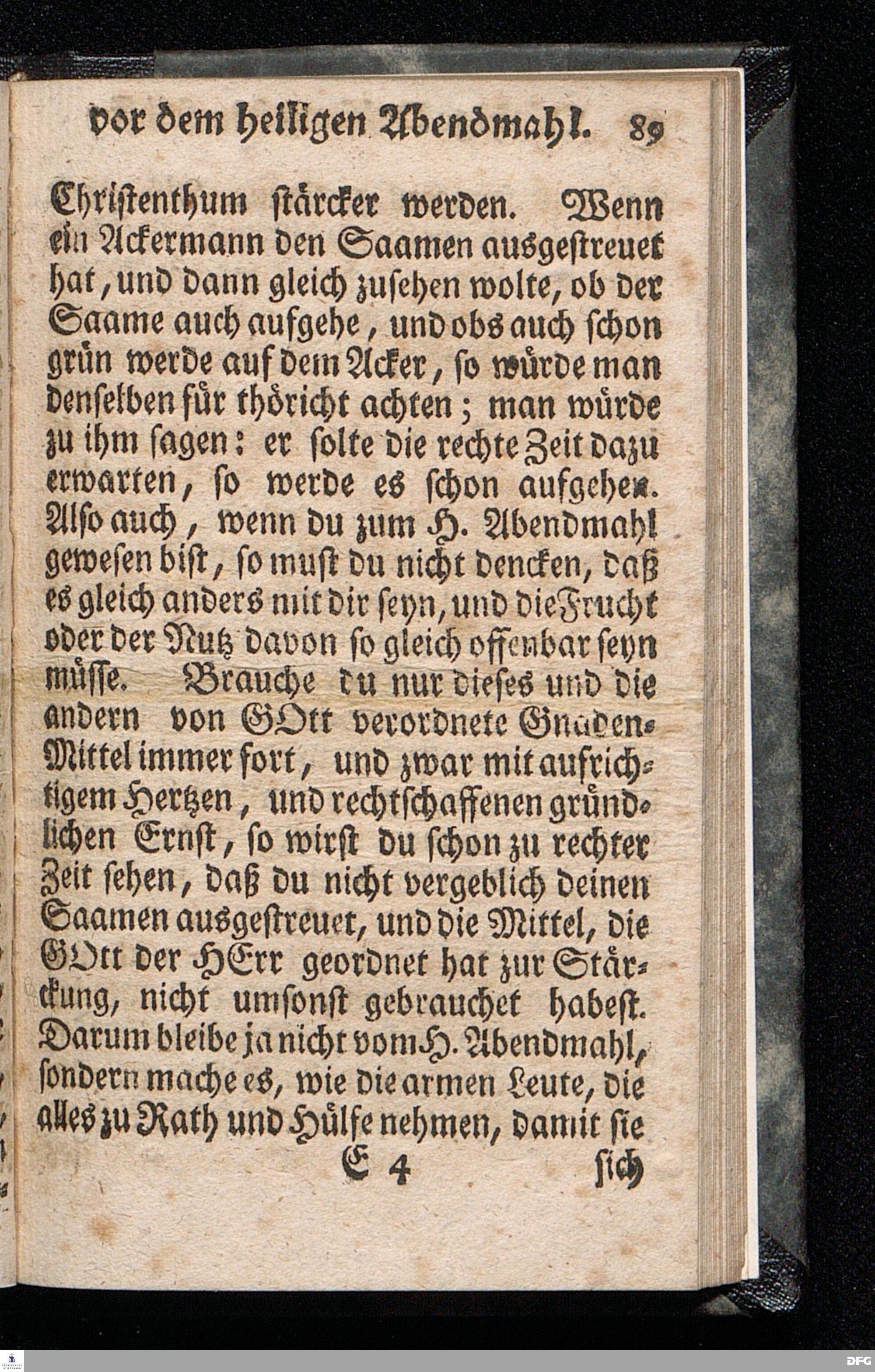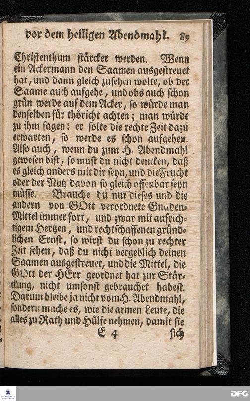 Die nöthige Prüfung sein selbst vor dem Gebrauch des Heiligen Abendmahls / Nach Anleitung der Epistol.Lection 1.Cor.IX [vielm.XI !], v.23 u.s.f. An dem so genannten Grünen Donnerstage Anno 1712. In der St.Georgen Kirche zu Glaucha an Halle vorgestellet, Und insonderheit mit zu einem Unterricht für diejenige, so sich aus mancherley Ursachen vom H.Abendmahl enthalten, gerichtet von August Hermann Francken / S.Th.P.O. & Past.zu St.Ulrich, u. des Gymn.Schol. Die fünfte Edition. Dabey ein Anhang von der unterschiedenen Beschaffenheit der würdigen Communicanten vom Autore zu Nürnberg vorgestellet den 6ten Mart. anno 1718. Der Jugend in den Schulen des Wäysen=Hauses nach gehaltenem Herbst=Examine ausgetheilet. HALLE, in Verlegung des Wäysenhauses, 1728.