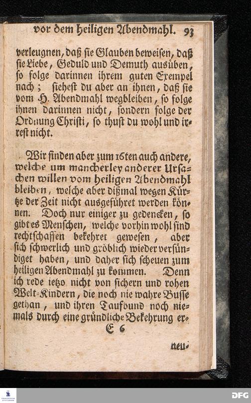 Die nöthige Prüfung sein selbst vor dem Gebrauch des Heiligen Abendmahls / Nach Anleitung der Epistol.Lection 1.Cor.IX [vielm.XI !], v.23 u.s.f. An dem so genannten Grünen Donnerstage Anno 1712. In der St.Georgen Kirche zu Glaucha an Halle vorgestellet, Und insonderheit mit zu einem Unterricht für diejenige, so sich aus mancherley Ursachen vom H.Abendmahl enthalten, gerichtet von August Hermann Francken / S.Th.P.O. & Past.zu St.Ulrich, u. des Gymn.Schol. Die fünfte Edition. Dabey ein Anhang von der unterschiedenen Beschaffenheit der würdigen Communicanten vom Autore zu Nürnberg vorgestellet den 6ten Mart. anno 1718. Der Jugend in den Schulen des Wäysen=Hauses nach gehaltenem Herbst=Examine ausgetheilet. HALLE, in Verlegung des Wäysenhauses, 1728.