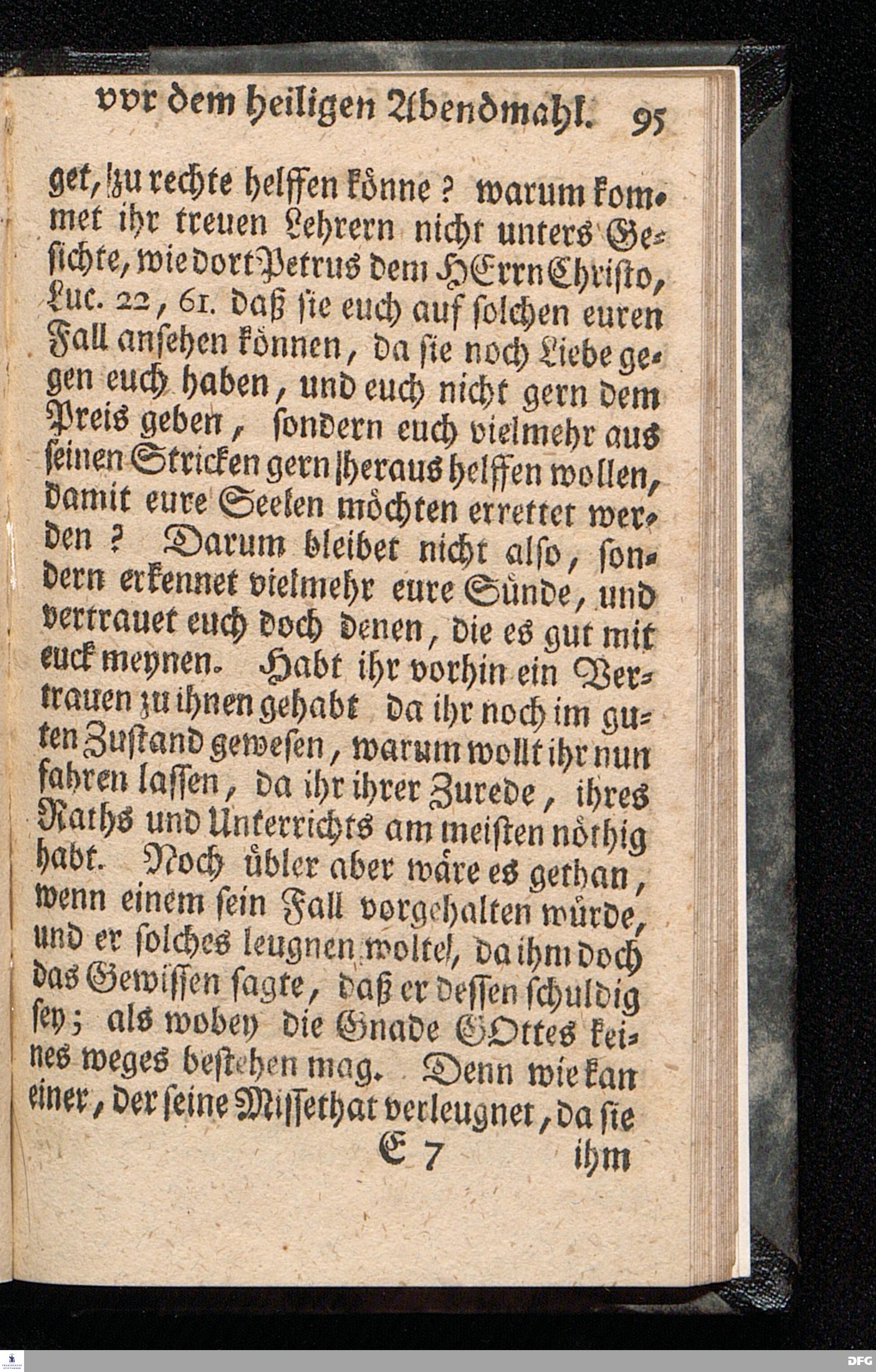 Die nöthige Prüfung sein selbst vor dem Gebrauch des Heiligen Abendmahls / Nach Anleitung der Epistol.Lection 1.Cor.IX [vielm.XI !], v.23 u.s.f. An dem so genannten Grünen Donnerstage Anno 1712. In der St.Georgen Kirche zu Glaucha an Halle vorgestellet, Und insonderheit mit zu einem Unterricht für diejenige, so sich aus mancherley Ursachen vom H.Abendmahl enthalten, gerichtet von August Hermann Francken / S.Th.P.O. & Past.zu St.Ulrich, u. des Gymn.Schol. Die fünfte Edition. Dabey ein Anhang von der unterschiedenen Beschaffenheit der würdigen Communicanten vom Autore zu Nürnberg vorgestellet den 6ten Mart. anno 1718. Der Jugend in den Schulen des Wäysen=Hauses nach gehaltenem Herbst=Examine ausgetheilet. HALLE, in Verlegung des Wäysenhauses, 1728.
