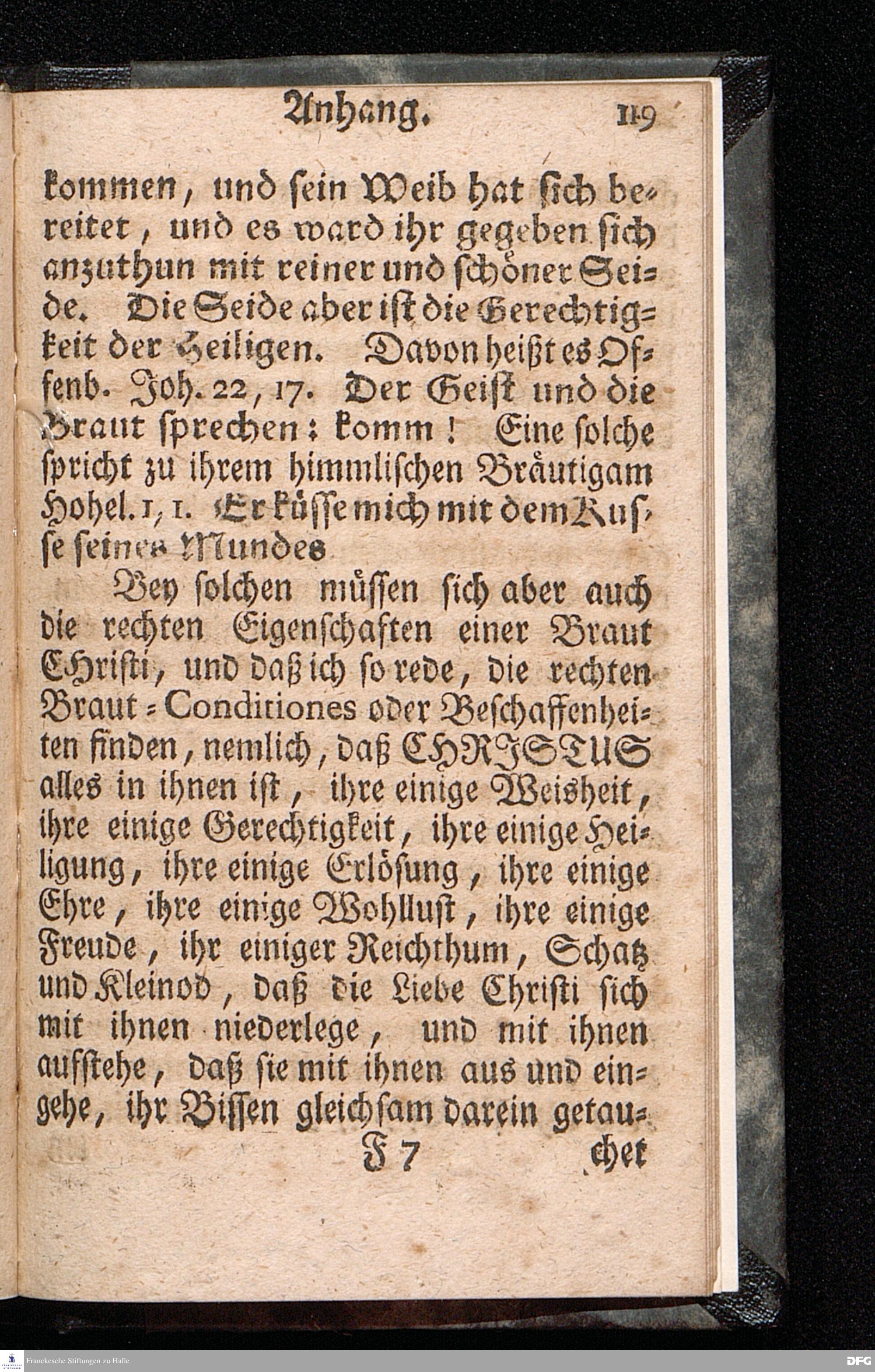Die nöthige Prüfung sein selbst vor dem Gebrauch des Heiligen Abendmahls / Nach Anleitung der Epistol.Lection 1.Cor.IX [vielm.XI !], v.23 u.s.f. An dem so genannten Grünen Donnerstage Anno 1712. In der St.Georgen Kirche zu Glaucha an Halle vorgestellet, Und insonderheit mit zu einem Unterricht für diejenige, so sich aus mancherley Ursachen vom H.Abendmahl enthalten, gerichtet von August Hermann Francken / S.Th.P.O. & Past.zu St.Ulrich, u. des Gymn.Schol. Die fünfte Edition. Dabey ein Anhang von der unterschiedenen Beschaffenheit der würdigen Communicanten vom Autore zu Nürnberg vorgestellet den 6ten Mart. anno 1718. Der Jugend in den Schulen des Wäysen=Hauses nach gehaltenem Herbst=Examine ausgetheilet. HALLE, in Verlegung des Wäysenhauses, 1728.