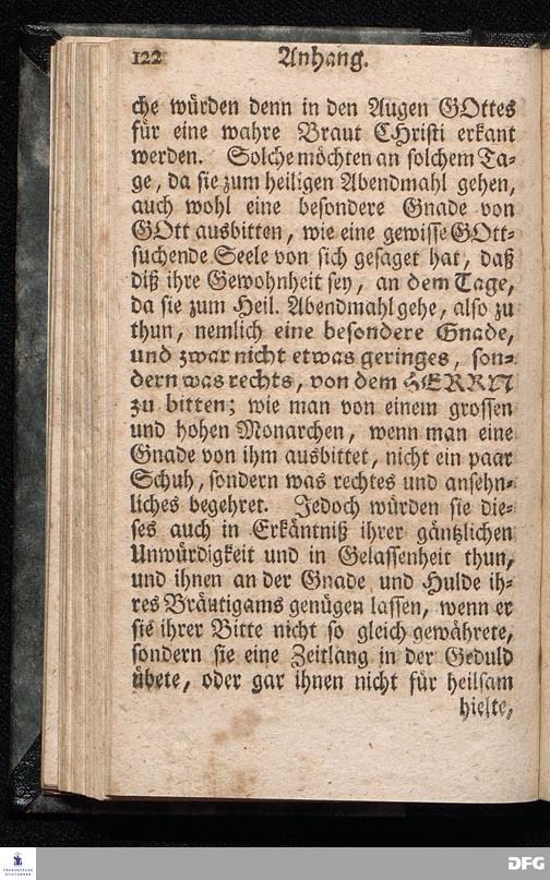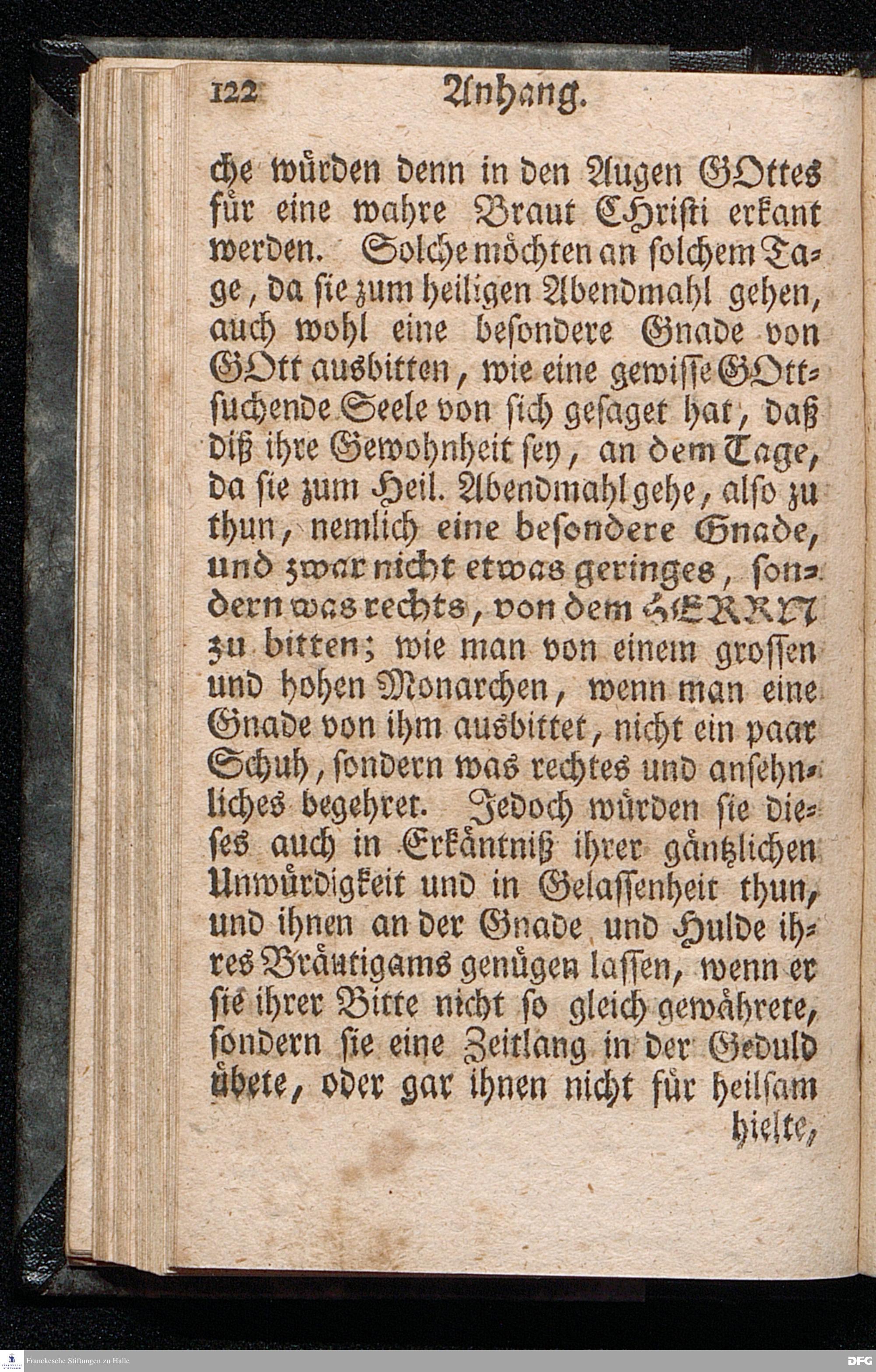 Die nöthige Prüfung sein selbst vor dem Gebrauch des Heiligen Abendmahls / Nach Anleitung der Epistol.Lection 1.Cor.IX [vielm.XI !], v.23 u.s.f. An dem so genannten Grünen Donnerstage Anno 1712. In der St.Georgen Kirche zu Glaucha an Halle vorgestellet, Und insonderheit mit zu einem Unterricht für diejenige, so sich aus mancherley Ursachen vom H.Abendmahl enthalten, gerichtet von August Hermann Francken / S.Th.P.O. & Past.zu St.Ulrich, u. des Gymn.Schol. Die fünfte Edition. Dabey ein Anhang von der unterschiedenen Beschaffenheit der würdigen Communicanten vom Autore zu Nürnberg vorgestellet den 6ten Mart. anno 1718. Der Jugend in den Schulen des Wäysen=Hauses nach gehaltenem Herbst=Examine ausgetheilet. HALLE, in Verlegung des Wäysenhauses, 1728.