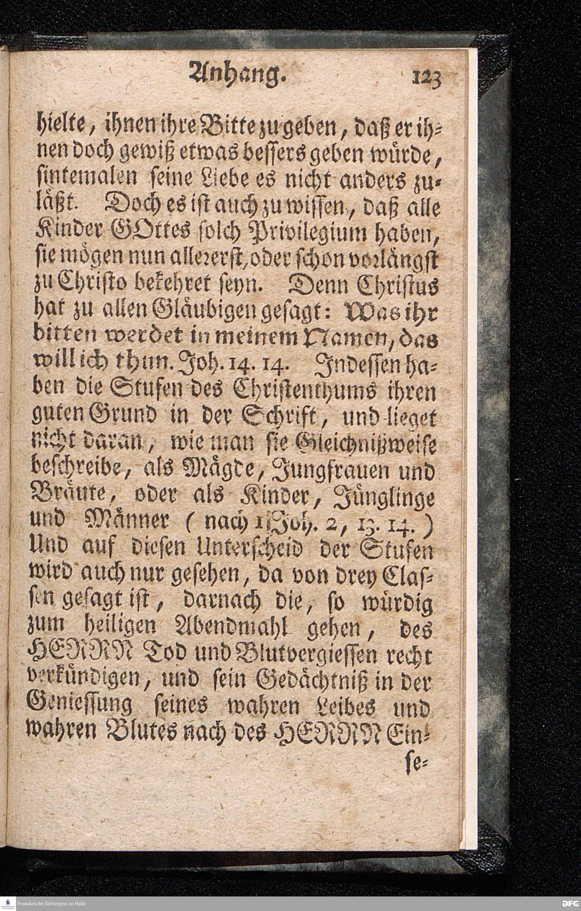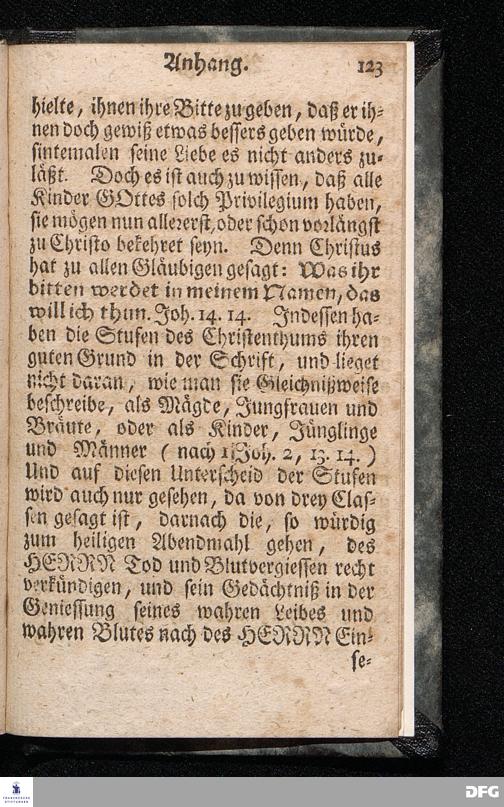 Die nöthige Prüfung sein selbst vor dem Gebrauch des Heiligen Abendmahls / Nach Anleitung der Epistol.Lection 1.Cor.IX [vielm.XI !], v.23 u.s.f. An dem so genannten Grünen Donnerstage Anno 1712. In der St.Georgen Kirche zu Glaucha an Halle vorgestellet, Und insonderheit mit zu einem Unterricht für diejenige, so sich aus mancherley Ursachen vom H.Abendmahl enthalten, gerichtet von August Hermann Francken / S.Th.P.O. & Past.zu St.Ulrich, u. des Gymn.Schol. Die fünfte Edition. Dabey ein Anhang von der unterschiedenen Beschaffenheit der würdigen Communicanten vom Autore zu Nürnberg vorgestellet den 6ten Mart. anno 1718. Der Jugend in den Schulen des Wäysen=Hauses nach gehaltenem Herbst=Examine ausgetheilet. HALLE, in Verlegung des Wäysenhauses, 1728.