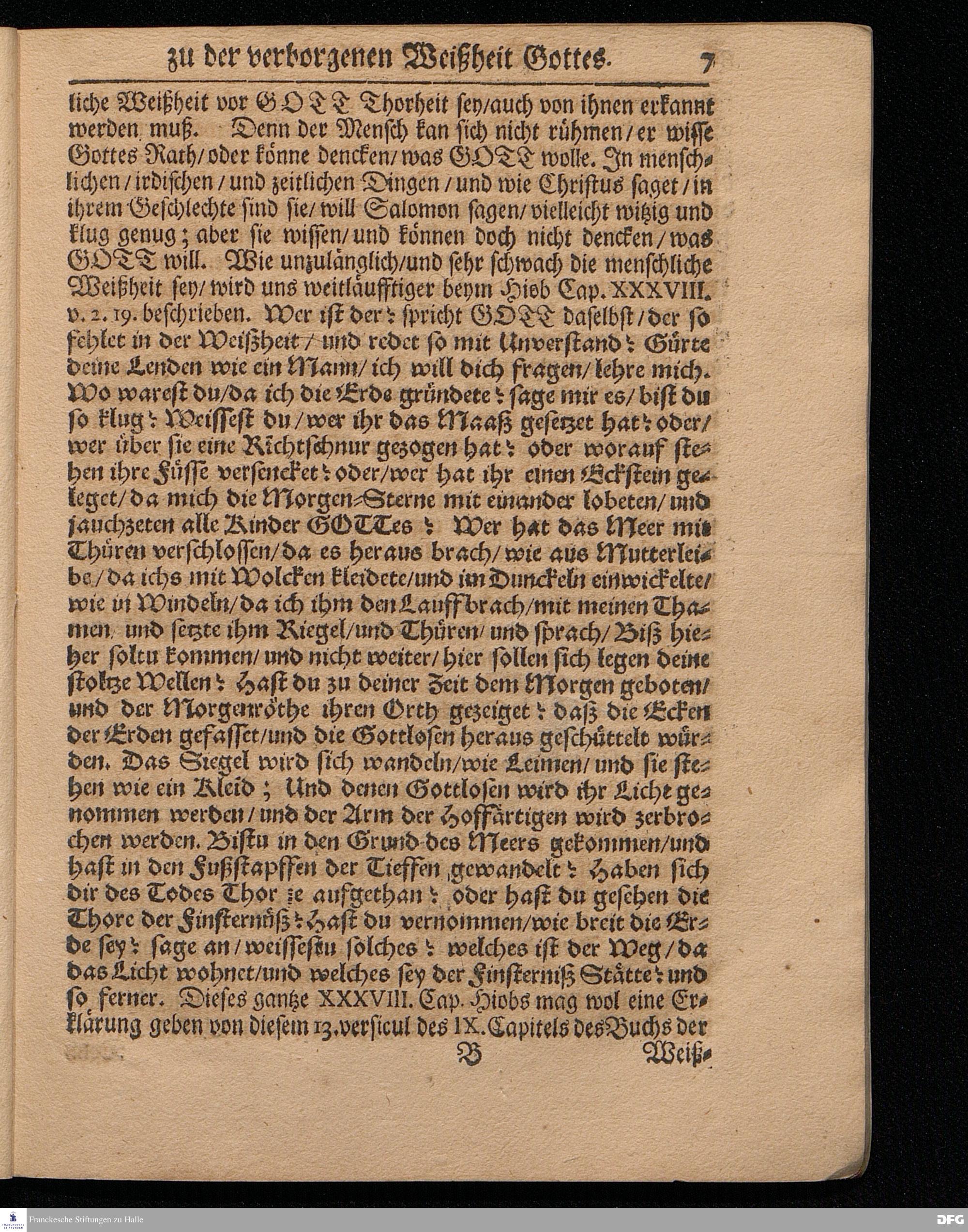 Die PAEDAGOGIE oder Handleitung zu der Verborgenen Weißheit Gottes vorgestellet aus dem Buch der Weißheit Cap.IX. V.13-19. Bey Beerdigung Eines Adelichen Knabens im Pædagogio zu Glaucha an Halle Joh.Heinrich von Sommerfeld und Falckenhayn / des Tit.Herrn / Herrn Frantz Albrecht von Sommerfeld und Falckenhayn / weyland hochbestallt=gewesenen Ober=Steuer=Einnehmers im Fürstenthum Lignitz / Jüngsten Sohnes / den 12.Aug. A.1701. In der S.Georgen=Kirchen zu Glaucha an Halle von August Hermann Francken / S.Theol.Prof.Ord.& Past. Gedruckt im Waysen=Hause Anno 1702.