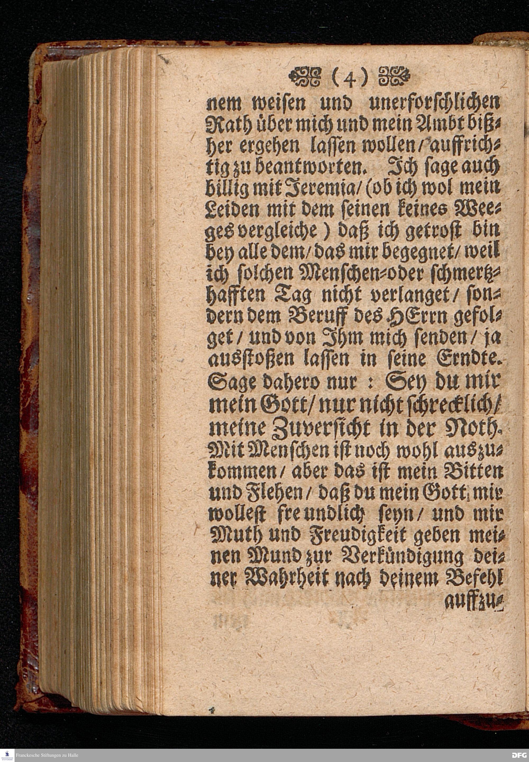 Der Fall und die Wiederauffrichtung der wahren Gerechtigkeit / Am VI.Sonntage nach Trinit. ANNO 1692. In einer Predigt Uber das Evangelium Matth.V, 20=26. In der St.Georgen=Kirche zu Glaucha an Halle Und nun Vor dem Angesicht der gantzen Christlichen Kirchen / zu Ablehnung vieler bißherigen / und Abwendung fernerer ungegründeten Aufflagen und besseren Unterricht / vorgestellet Und nun zum drittenmal herausgegeben von M.August Hermann Francken / SS.Theol.Gr.& OO.LL.P.P.Ord.& P.Glauch. HALLE / Gedruckt bey Christian Henckeln / Univ.B. 1702.
