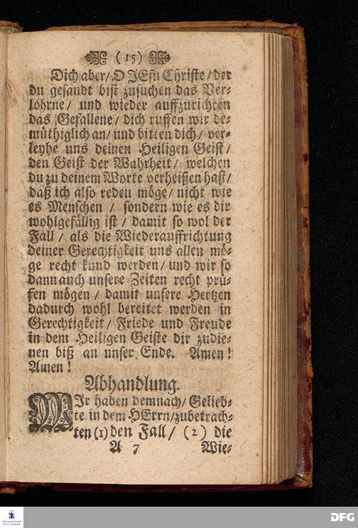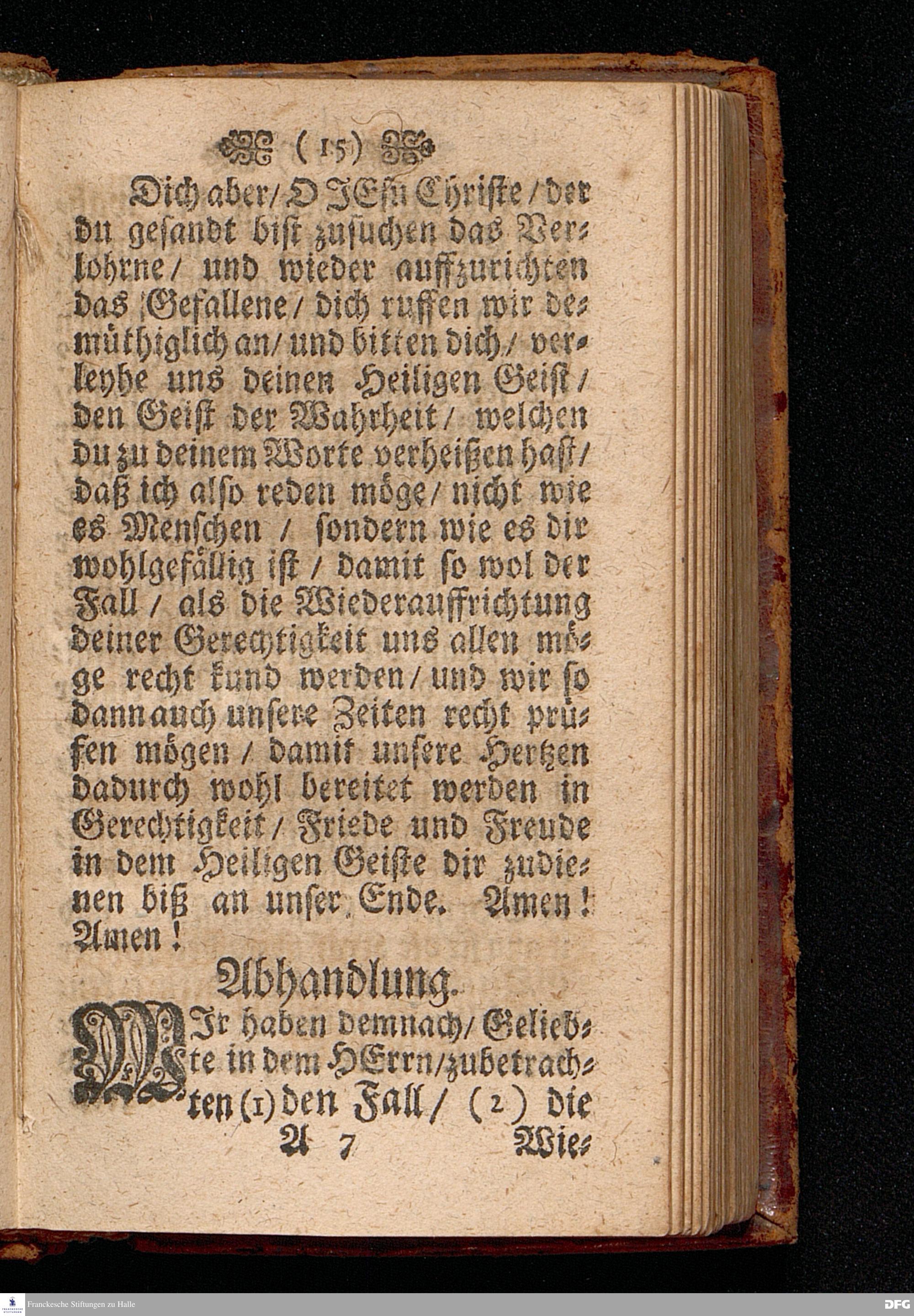 Der Fall und die Wiederauffrichtung der wahren Gerechtigkeit / Am VI.Sonntage nach Trinit. ANNO 1692. In einer Predigt Uber das Evangelium Matth.V, 20=26. In der St.Georgen=Kirche zu Glaucha an Halle Und nun Vor dem Angesicht der gantzen Christlichen Kirchen / zu Ablehnung vieler bißherigen / und Abwendung fernerer ungegründeten Aufflagen und besseren Unterricht / vorgestellet Und nun zum drittenmal herausgegeben von M.August Hermann Francken / SS.Theol.Gr.& OO.LL.P.P.Ord.& P.Glauch. HALLE / Gedruckt bey Christian Henckeln / Univ.B. 1702.
