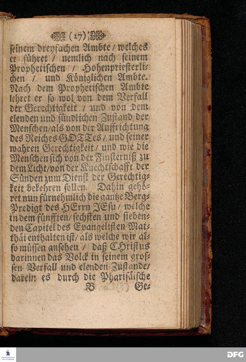 Der Fall und die Wiederauffrichtung der wahren Gerechtigkeit / Am VI.Sonntage nach Trinit. ANNO 1692. In einer Predigt Uber das Evangelium Matth.V, 20=26. In der St.Georgen=Kirche zu Glaucha an Halle Und nun Vor dem Angesicht der gantzen Christlichen Kirchen / zu Ablehnung vieler bißherigen / und Abwendung fernerer ungegründeten Aufflagen und besseren Unterricht / vorgestellet Und nun zum drittenmal herausgegeben von M.August Hermann Francken / SS.Theol.Gr.& OO.LL.P.P.Ord.& P.Glauch. HALLE / Gedruckt bey Christian Henckeln / Univ.B. 1702.