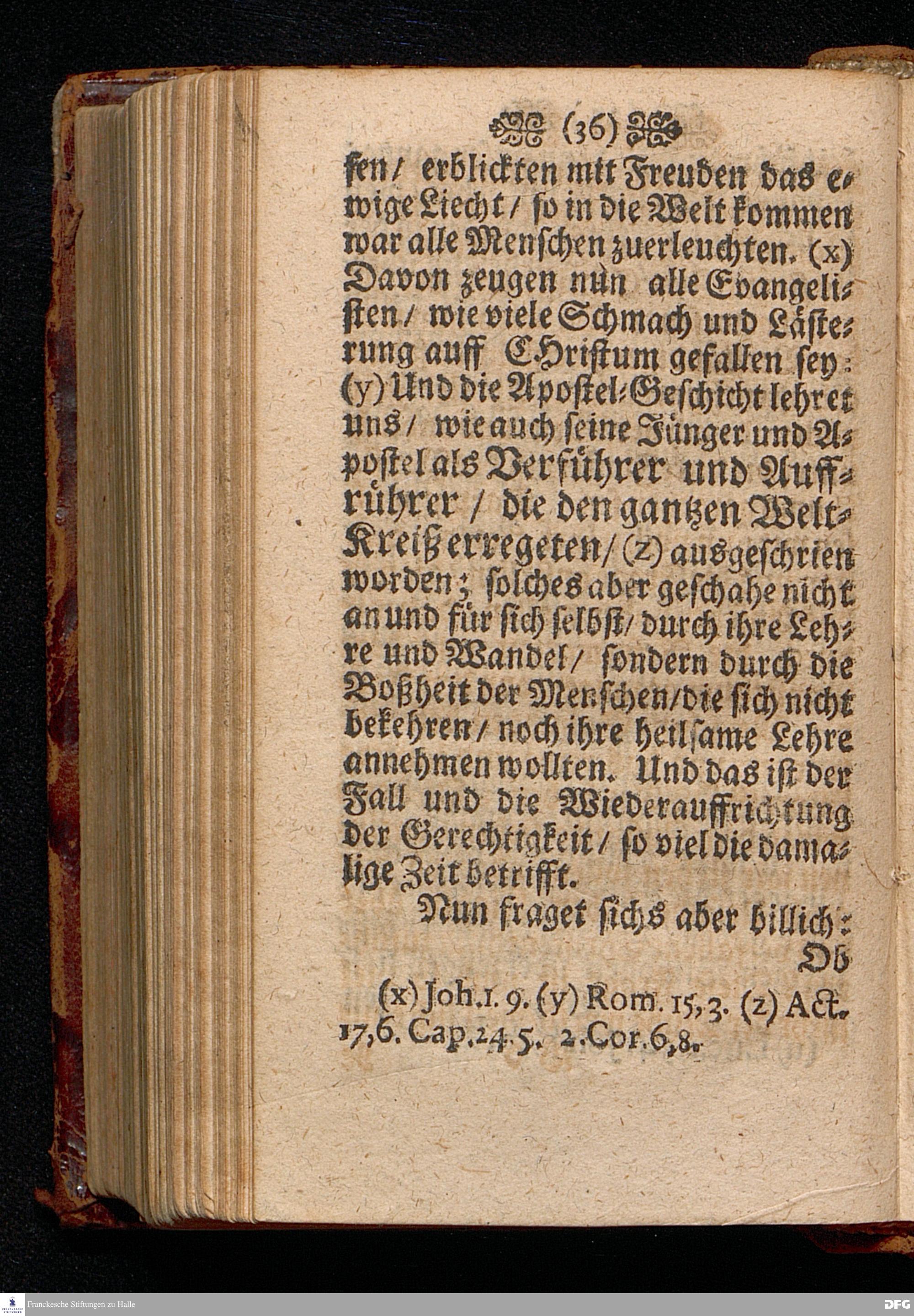 Der Fall und die Wiederauffrichtung der wahren Gerechtigkeit / Am VI.Sonntage nach Trinit. ANNO 1692. In einer Predigt Uber das Evangelium Matth.V, 20=26. In der St.Georgen=Kirche zu Glaucha an Halle Und nun Vor dem Angesicht der gantzen Christlichen Kirchen / zu Ablehnung vieler bißherigen / und Abwendung fernerer ungegründeten Aufflagen und besseren Unterricht / vorgestellet Und nun zum drittenmal herausgegeben von M.August Hermann Francken / SS.Theol.Gr.& OO.LL.P.P.Ord.& P.Glauch. HALLE / Gedruckt bey Christian Henckeln / Univ.B. 1702.