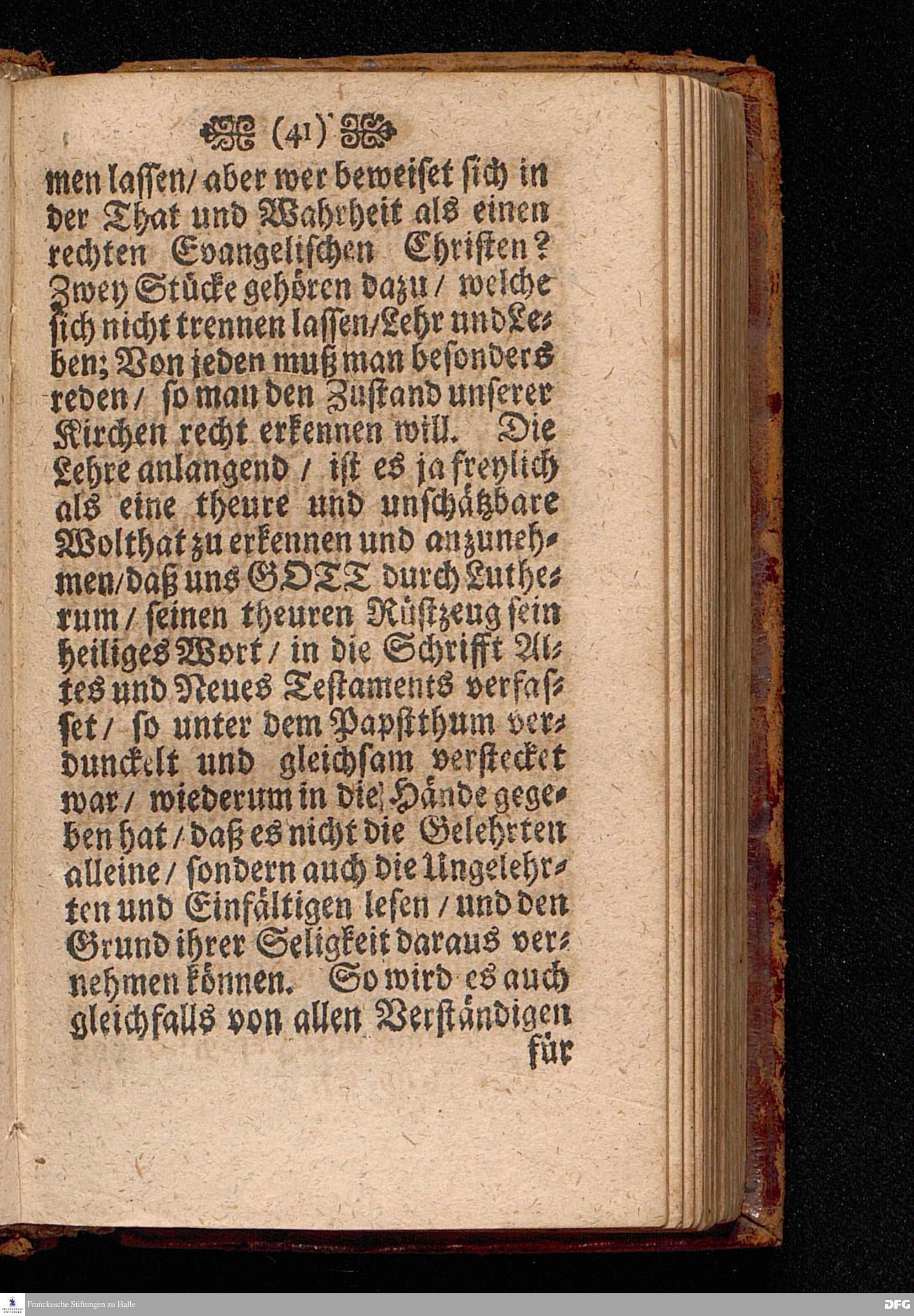Der Fall und die Wiederauffrichtung der wahren Gerechtigkeit / Am VI.Sonntage nach Trinit. ANNO 1692. In einer Predigt Uber das Evangelium Matth.V, 20=26. In der St.Georgen=Kirche zu Glaucha an Halle Und nun Vor dem Angesicht der gantzen Christlichen Kirchen / zu Ablehnung vieler bißherigen / und Abwendung fernerer ungegründeten Aufflagen und besseren Unterricht / vorgestellet Und nun zum drittenmal herausgegeben von M.August Hermann Francken / SS.Theol.Gr.& OO.LL.P.P.Ord.& P.Glauch. HALLE / Gedruckt bey Christian Henckeln / Univ.B. 1702.