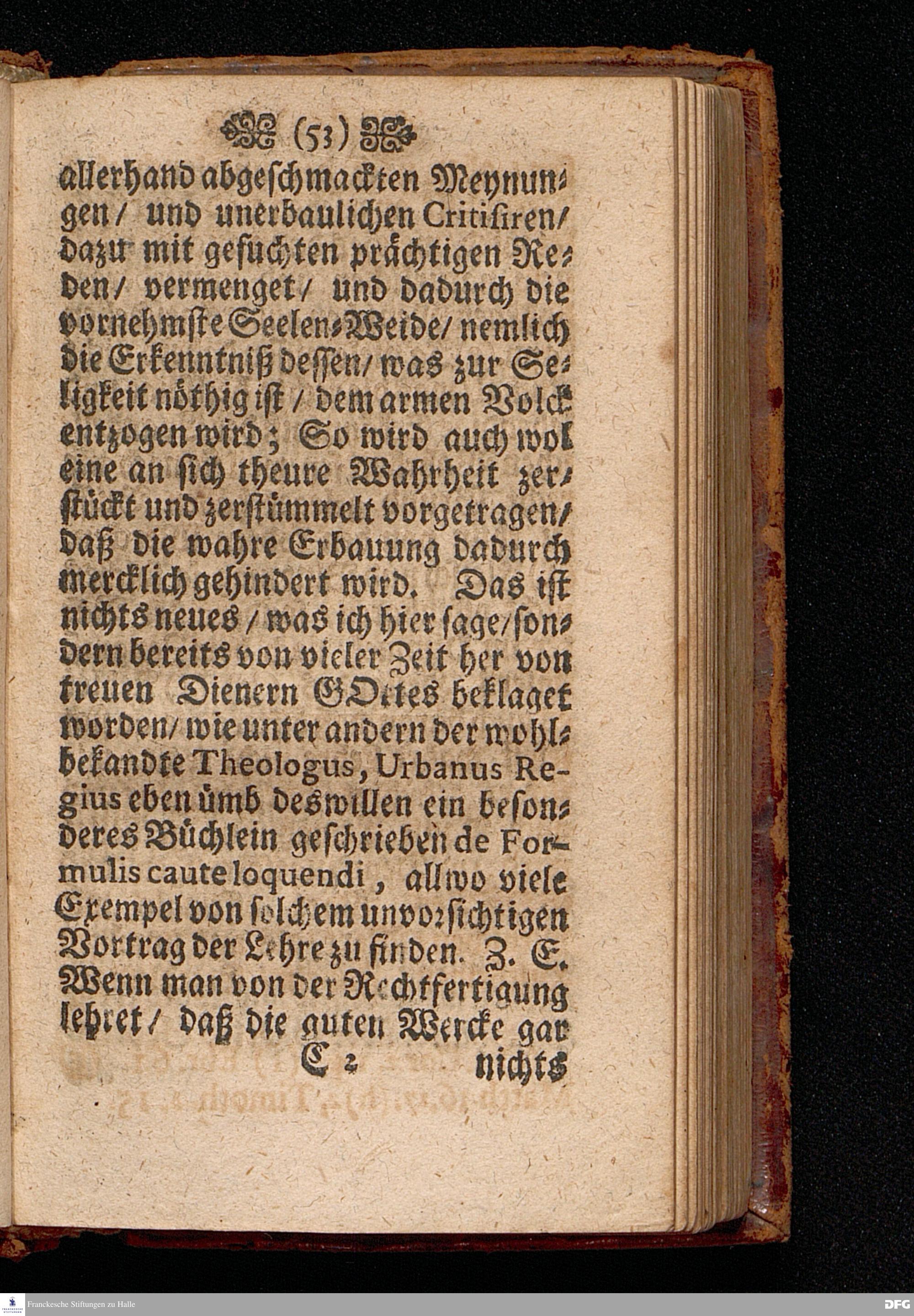 Der Fall und die Wiederauffrichtung der wahren Gerechtigkeit / Am VI.Sonntage nach Trinit. ANNO 1692. In einer Predigt Uber das Evangelium Matth.V, 20=26. In der St.Georgen=Kirche zu Glaucha an Halle Und nun Vor dem Angesicht der gantzen Christlichen Kirchen / zu Ablehnung vieler bißherigen / und Abwendung fernerer ungegründeten Aufflagen und besseren Unterricht / vorgestellet Und nun zum drittenmal herausgegeben von M.August Hermann Francken / SS.Theol.Gr.& OO.LL.P.P.Ord.& P.Glauch. HALLE / Gedruckt bey Christian Henckeln / Univ.B. 1702.