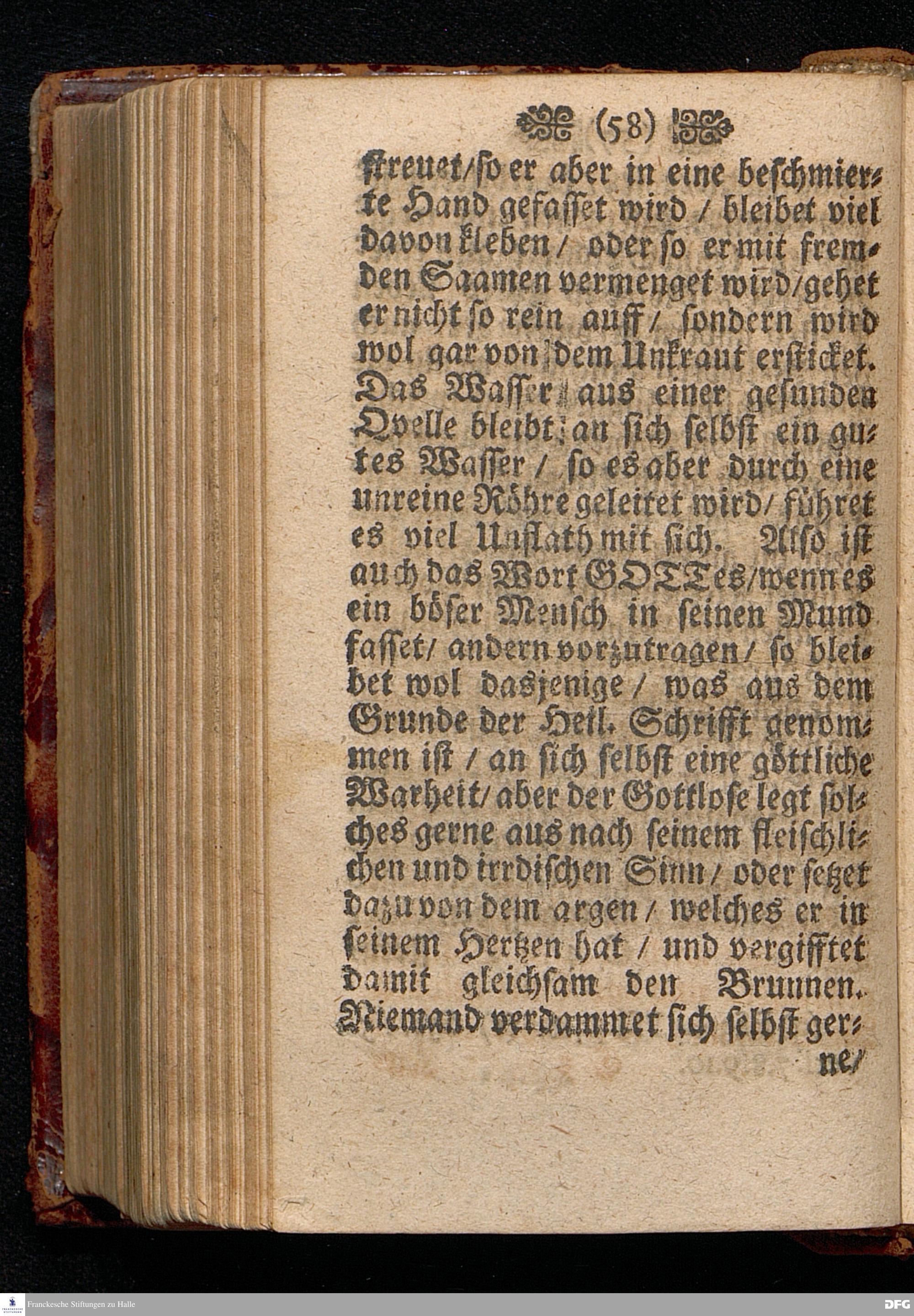 Der Fall und die Wiederauffrichtung der wahren Gerechtigkeit / Am VI.Sonntage nach Trinit. ANNO 1692. In einer Predigt Uber das Evangelium Matth.V, 20=26. In der St.Georgen=Kirche zu Glaucha an Halle Und nun Vor dem Angesicht der gantzen Christlichen Kirchen / zu Ablehnung vieler bißherigen / und Abwendung fernerer ungegründeten Aufflagen und besseren Unterricht / vorgestellet Und nun zum drittenmal herausgegeben von M.August Hermann Francken / SS.Theol.Gr.& OO.LL.P.P.Ord.& P.Glauch. HALLE / Gedruckt bey Christian Henckeln / Univ.B. 1702.