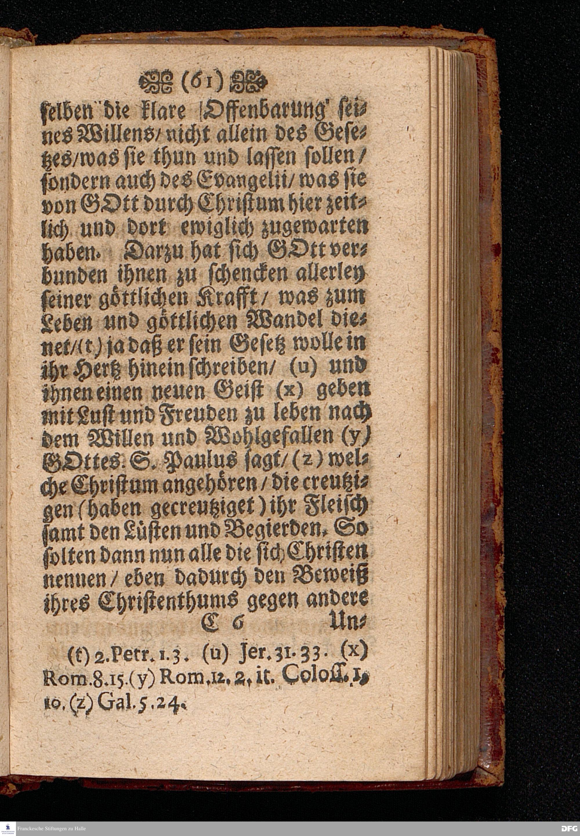 Der Fall und die Wiederauffrichtung der wahren Gerechtigkeit / Am VI.Sonntage nach Trinit. ANNO 1692. In einer Predigt Uber das Evangelium Matth.V, 20=26. In der St.Georgen=Kirche zu Glaucha an Halle Und nun Vor dem Angesicht der gantzen Christlichen Kirchen / zu Ablehnung vieler bißherigen / und Abwendung fernerer ungegründeten Aufflagen und besseren Unterricht / vorgestellet Und nun zum drittenmal herausgegeben von M.August Hermann Francken / SS.Theol.Gr.& OO.LL.P.P.Ord.& P.Glauch. HALLE / Gedruckt bey Christian Henckeln / Univ.B. 1702.