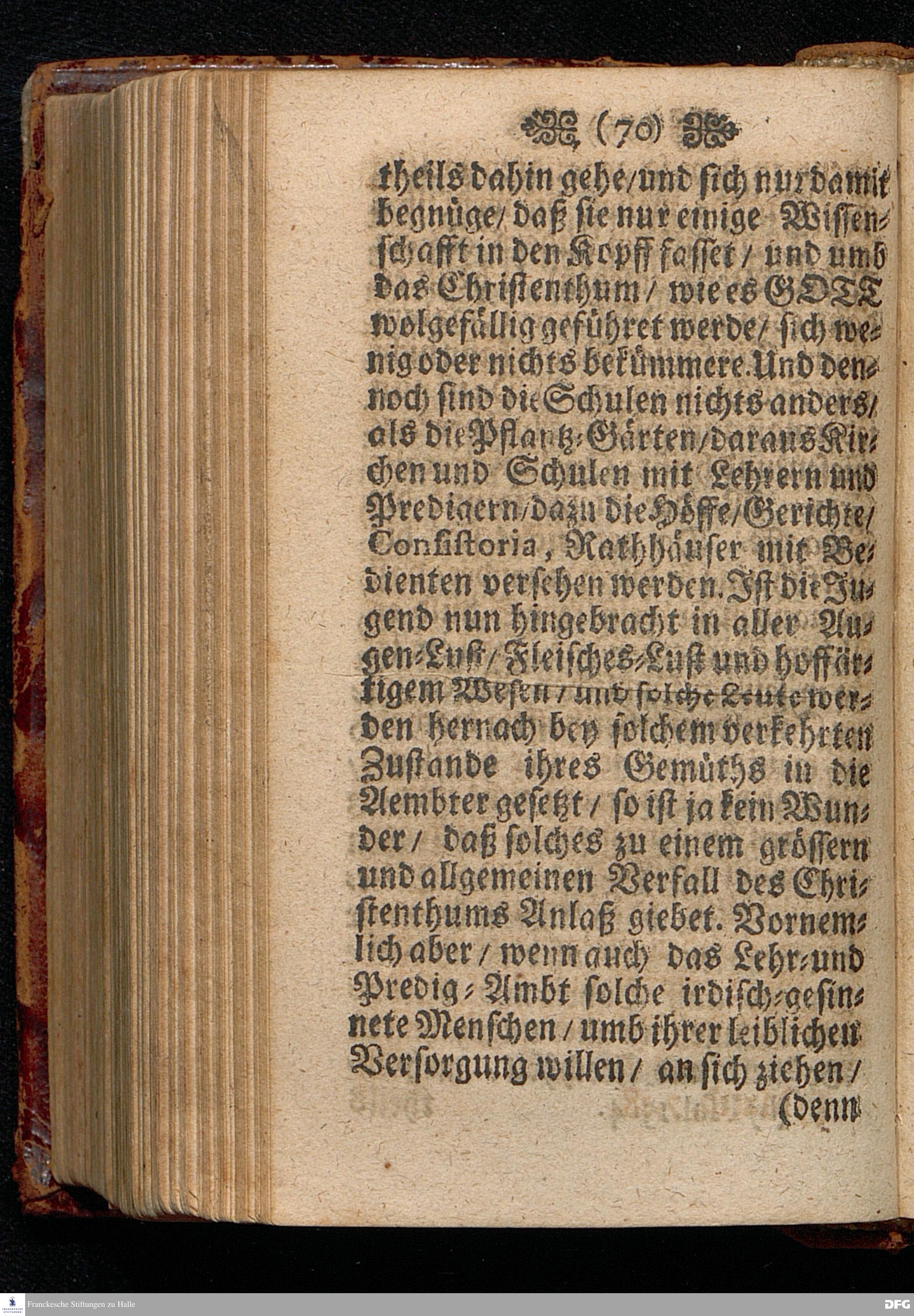 Der Fall und die Wiederauffrichtung der wahren Gerechtigkeit / Am VI.Sonntage nach Trinit. ANNO 1692. In einer Predigt Uber das Evangelium Matth.V, 20=26. In der St.Georgen=Kirche zu Glaucha an Halle Und nun Vor dem Angesicht der gantzen Christlichen Kirchen / zu Ablehnung vieler bißherigen / und Abwendung fernerer ungegründeten Aufflagen und besseren Unterricht / vorgestellet Und nun zum drittenmal herausgegeben von M.August Hermann Francken / SS.Theol.Gr.& OO.LL.P.P.Ord.& P.Glauch. HALLE / Gedruckt bey Christian Henckeln / Univ.B. 1702.