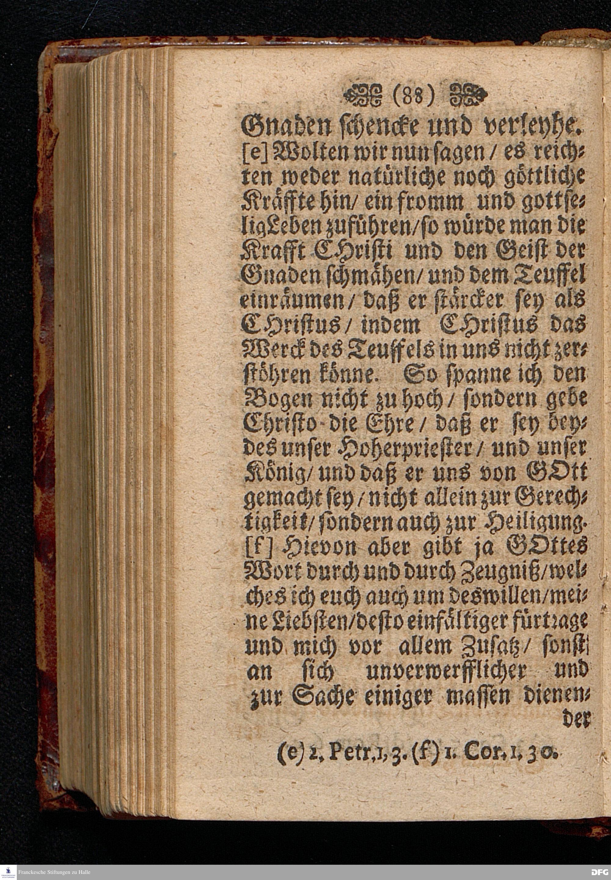 Der Fall und die Wiederauffrichtung der wahren Gerechtigkeit / Am VI.Sonntage nach Trinit. ANNO 1692. In einer Predigt Uber das Evangelium Matth.V, 20=26. In der St.Georgen=Kirche zu Glaucha an Halle Und nun Vor dem Angesicht der gantzen Christlichen Kirchen / zu Ablehnung vieler bißherigen / und Abwendung fernerer ungegründeten Aufflagen und besseren Unterricht / vorgestellet Und nun zum drittenmal herausgegeben von M.August Hermann Francken / SS.Theol.Gr.& OO.LL.P.P.Ord.& P.Glauch. HALLE / Gedruckt bey Christian Henckeln / Univ.B. 1702.