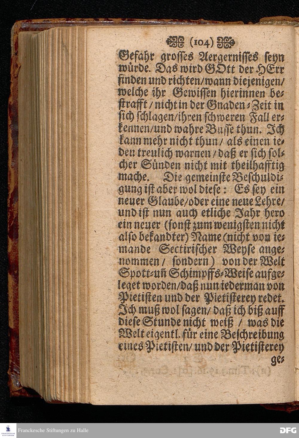 Der Fall und die Wiederauffrichtung der wahren Gerechtigkeit / Am VI.Sonntage nach Trinit. ANNO 1692. In einer Predigt Uber das Evangelium Matth.V, 20=26. In der St.Georgen=Kirche zu Glaucha an Halle Und nun Vor dem Angesicht der gantzen Christlichen Kirchen / zu Ablehnung vieler bißherigen / und Abwendung fernerer ungegründeten Aufflagen und besseren Unterricht / vorgestellet Und nun zum drittenmal herausgegeben von M.August Hermann Francken / SS.Theol.Gr.& OO.LL.P.P.Ord.& P.Glauch. HALLE / Gedruckt bey Christian Henckeln / Univ.B. 1702.