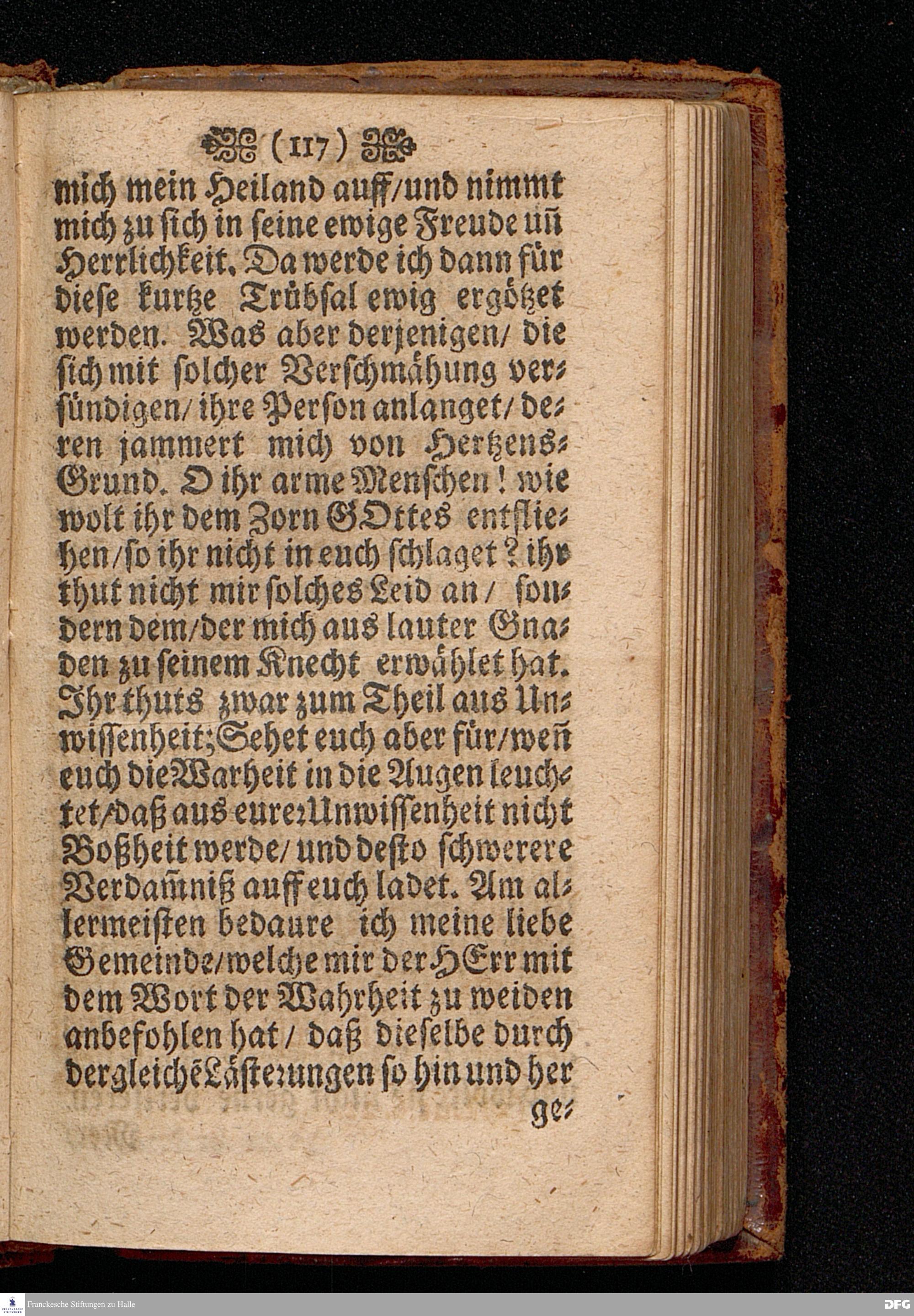 Der Fall und die Wiederauffrichtung der wahren Gerechtigkeit / Am VI.Sonntage nach Trinit. ANNO 1692. In einer Predigt Uber das Evangelium Matth.V, 20=26. In der St.Georgen=Kirche zu Glaucha an Halle Und nun Vor dem Angesicht der gantzen Christlichen Kirchen / zu Ablehnung vieler bißherigen / und Abwendung fernerer ungegründeten Aufflagen und besseren Unterricht / vorgestellet Und nun zum drittenmal herausgegeben von M.August Hermann Francken / SS.Theol.Gr.& OO.LL.P.P.Ord.& P.Glauch. HALLE / Gedruckt bey Christian Henckeln / Univ.B. 1702.