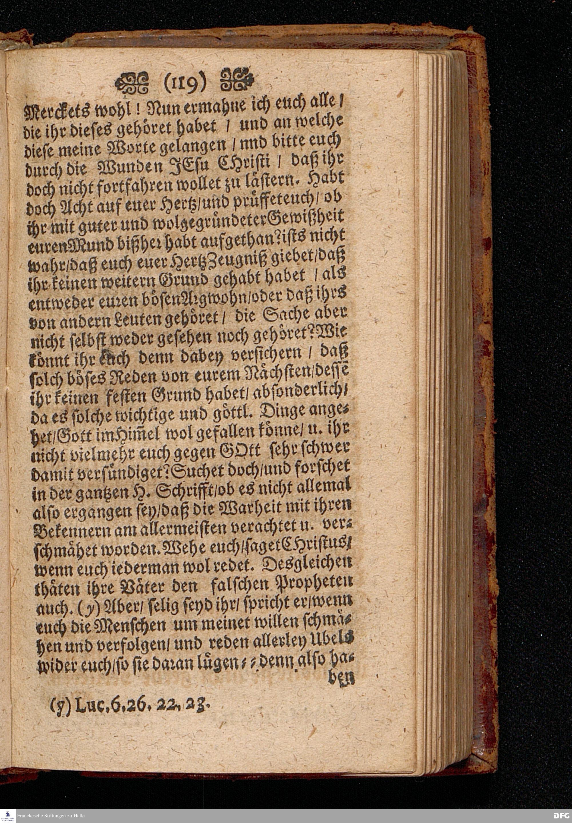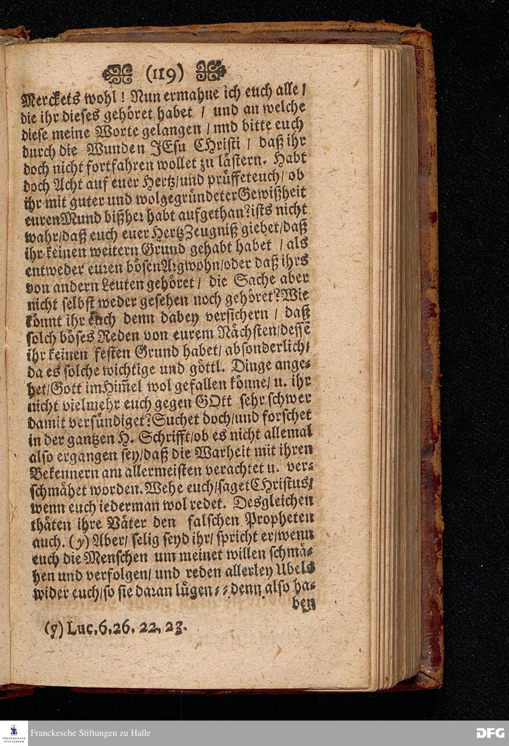 Der Fall und die Wiederauffrichtung der wahren Gerechtigkeit / Am VI.Sonntage nach Trinit. ANNO 1692. In einer Predigt Uber das Evangelium Matth.V, 20=26. In der St.Georgen=Kirche zu Glaucha an Halle Und nun Vor dem Angesicht der gantzen Christlichen Kirchen / zu Ablehnung vieler bißherigen / und Abwendung fernerer ungegründeten Aufflagen und besseren Unterricht / vorgestellet Und nun zum drittenmal herausgegeben von M.August Hermann Francken / SS.Theol.Gr.& OO.LL.P.P.Ord.& P.Glauch. HALLE / Gedruckt bey Christian Henckeln / Univ.B. 1702.