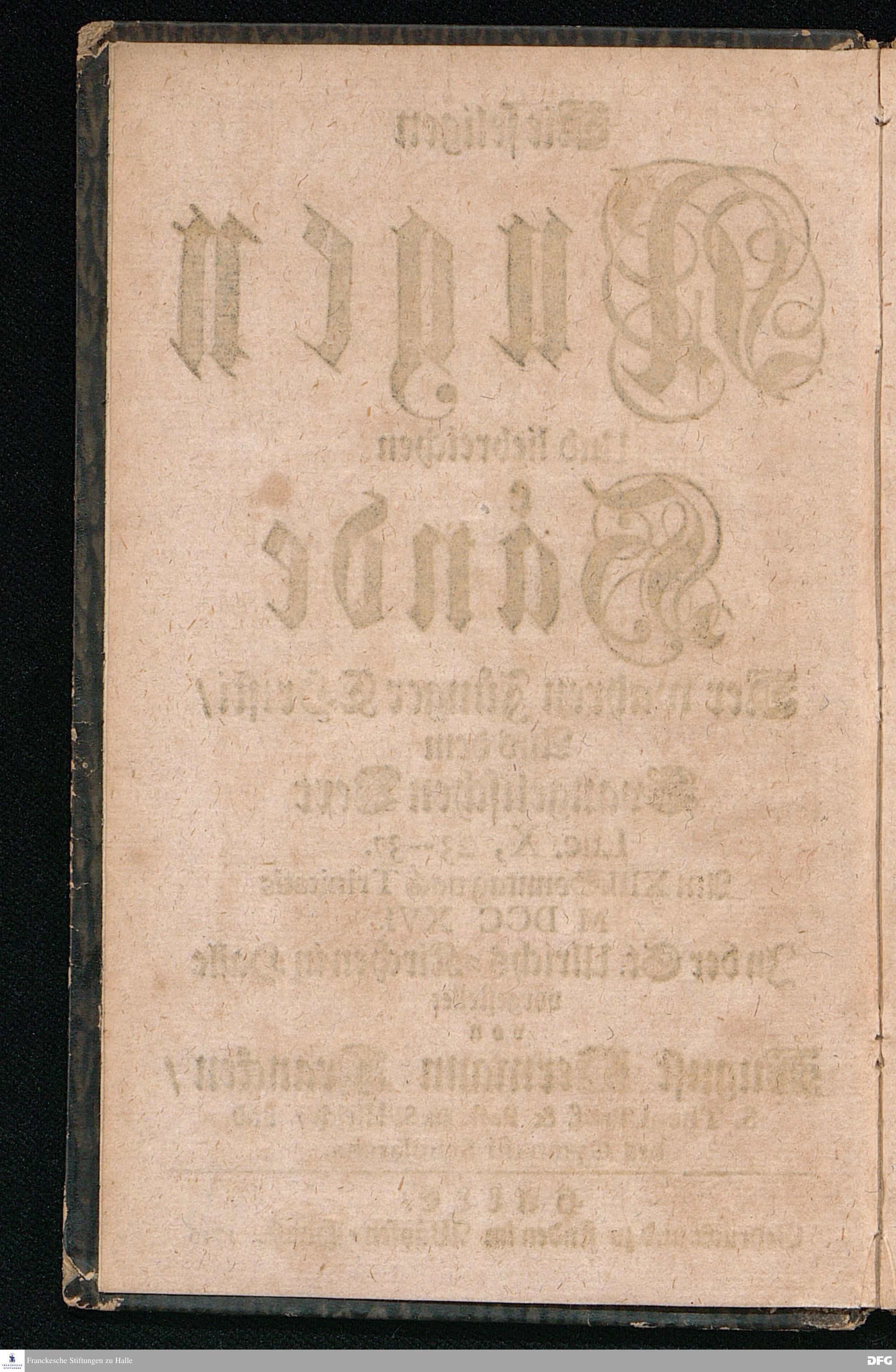Die seligen Augen Und liebreichen Hände Der wahren Jünger CHristi / Aus dem Evangelischen Text Luc.X, 23--37. Am XIII.Sonntag nach Trinitatis MDCCXVI. In der St.Ulrichs=Kirchen in Halle vorgestellet von August Hermann Francken / S.Theol.Prof.& Past.zu S.Ulrich / und des Gymnasii Scholarcha. HALLE / Gedruckt und zu finden im Wäysen=Hause. 1716.