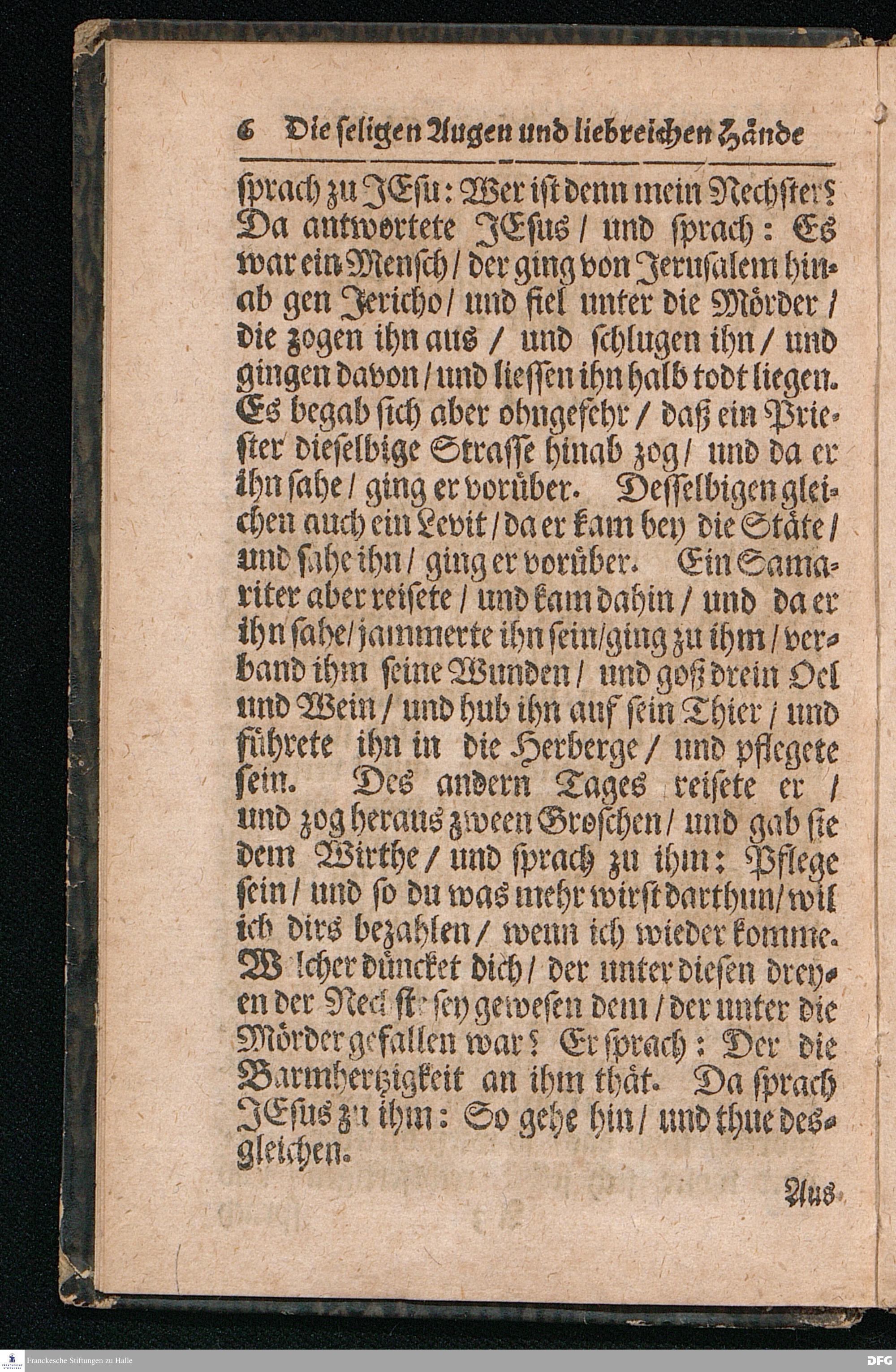 Die seligen Augen Und liebreichen Hände Der wahren Jünger CHristi / Aus dem Evangelischen Text Luc.X, 23--37. Am XIII.Sonntag nach Trinitatis MDCCXVI. In der St.Ulrichs=Kirchen in Halle vorgestellet von August Hermann Francken / S.Theol.Prof.& Past.zu S.Ulrich / und des Gymnasii Scholarcha. HALLE / Gedruckt und zu finden im Wäysen=Hause. 1716.