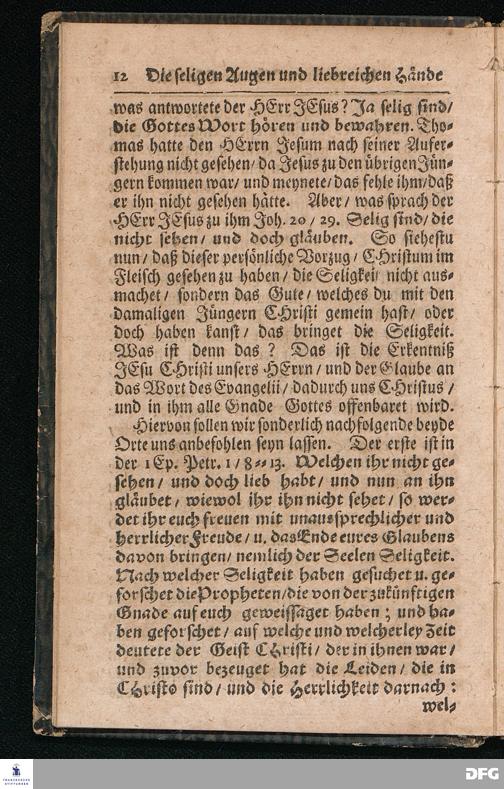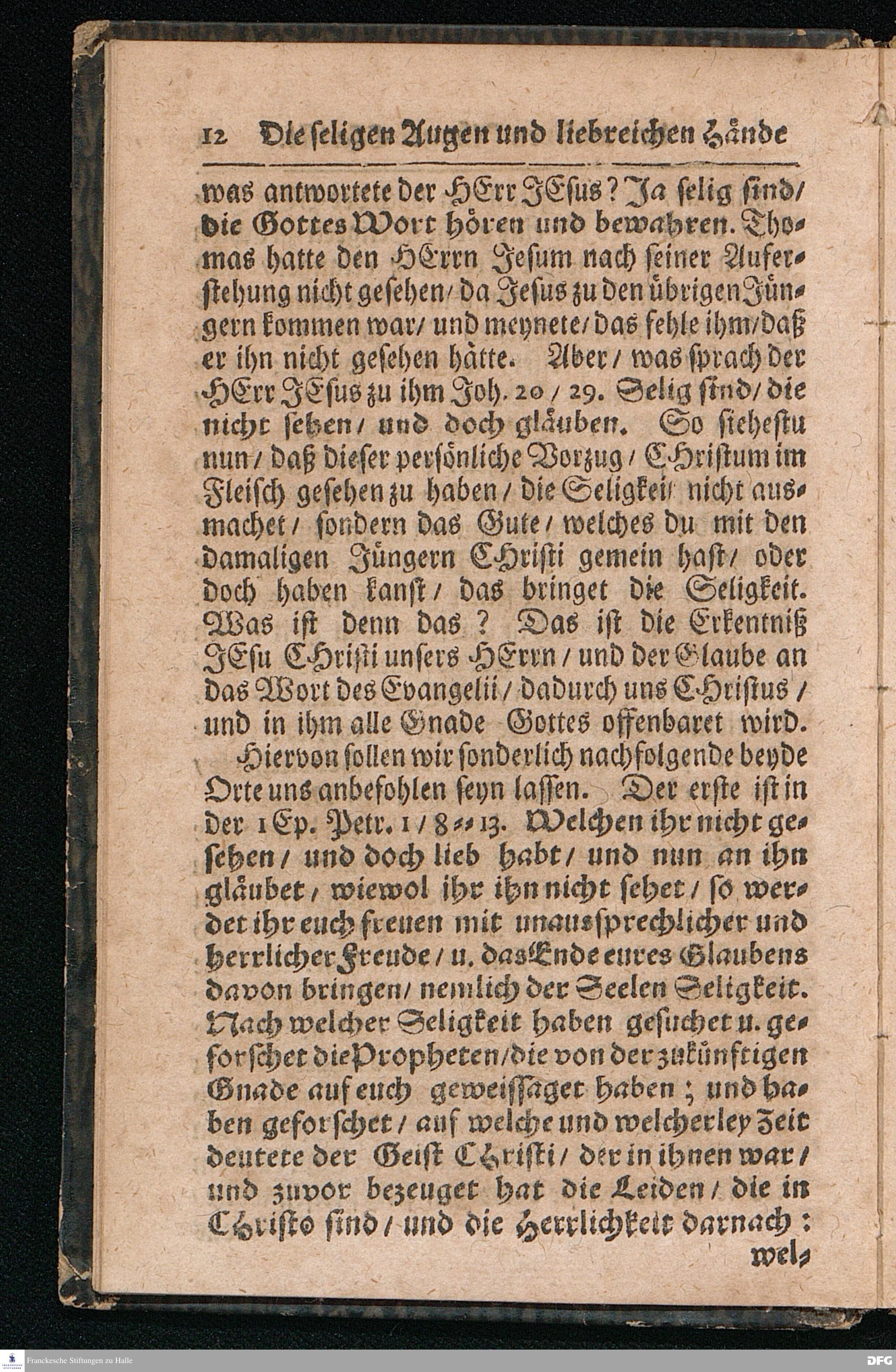 Die seligen Augen Und liebreichen Hände Der wahren Jünger CHristi / Aus dem Evangelischen Text Luc.X, 23--37. Am XIII.Sonntag nach Trinitatis MDCCXVI. In der St.Ulrichs=Kirchen in Halle vorgestellet von August Hermann Francken / S.Theol.Prof.& Past.zu S.Ulrich / und des Gymnasii Scholarcha. HALLE / Gedruckt und zu finden im Wäysen=Hause. 1716.