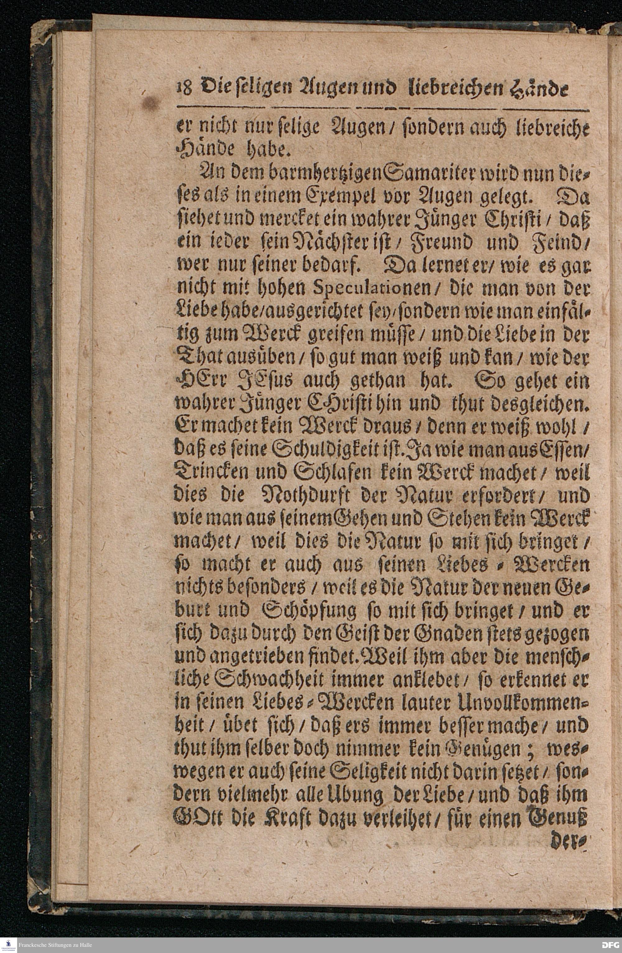 Die seligen Augen Und liebreichen Hände Der wahren Jünger CHristi / Aus dem Evangelischen Text Luc.X, 23--37. Am XIII.Sonntag nach Trinitatis MDCCXVI. In der St.Ulrichs=Kirchen in Halle vorgestellet von August Hermann Francken / S.Theol.Prof.& Past.zu S.Ulrich / und des Gymnasii Scholarcha. HALLE / Gedruckt und zu finden im Wäysen=Hause. 1716.