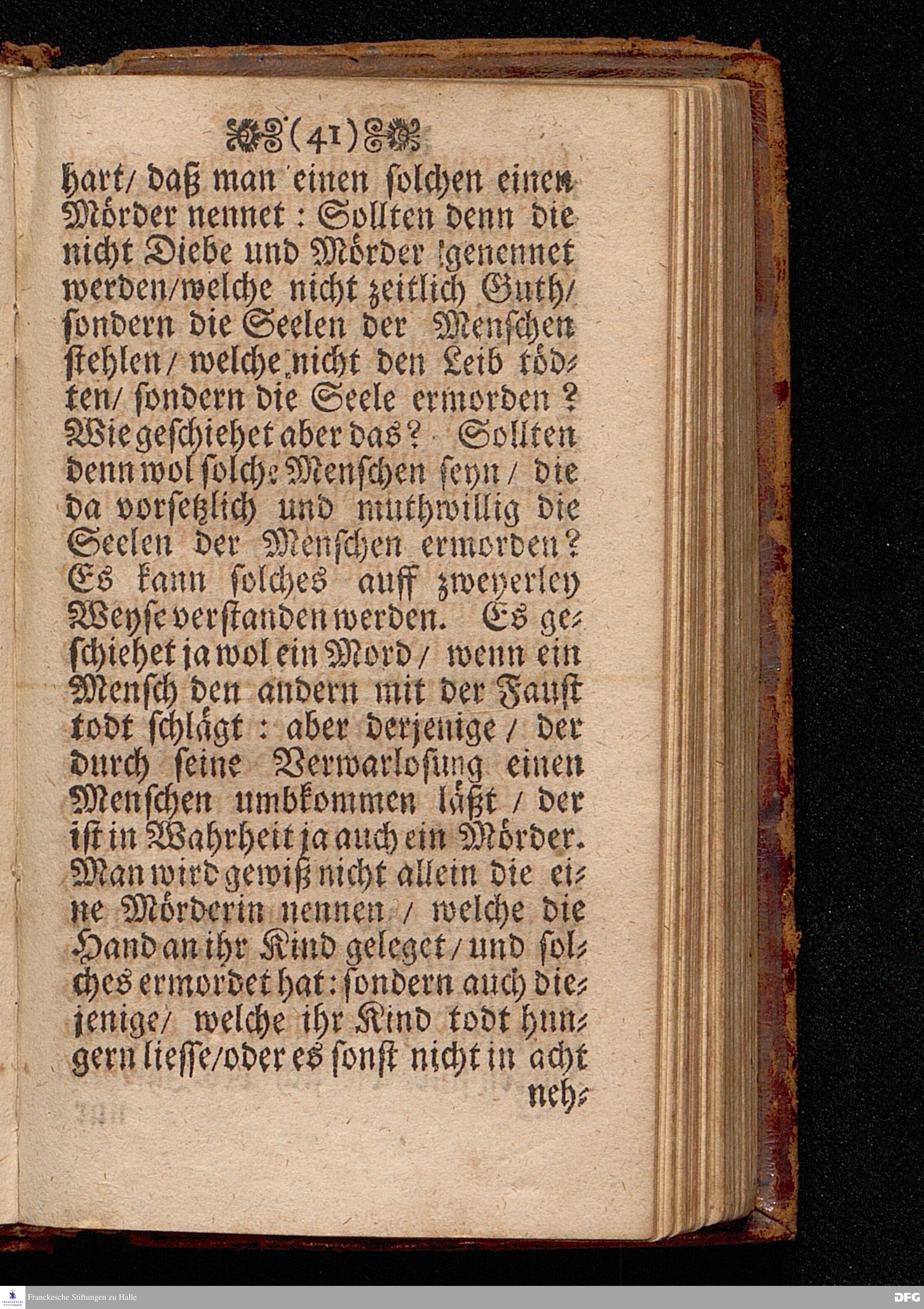 Predigt Von den Falschen Propheten / Uber das Evangelium Matth.VII, Vers. 15--23. Am 8. Sonntag nach Trinitatis Anno 1698. In der St.Georgen=Kirche zu Glaucha an Halle gehalten / Und nunmehro zum dritten mal herausgegeben / von M. August Hermann Francken / SS.Theol.Gr.& OO.LL.P.P.Ord.& P.Glauch. HALLE / Druckts Christian Henckel / Univers.Buchdr.J.J.C. 1699.