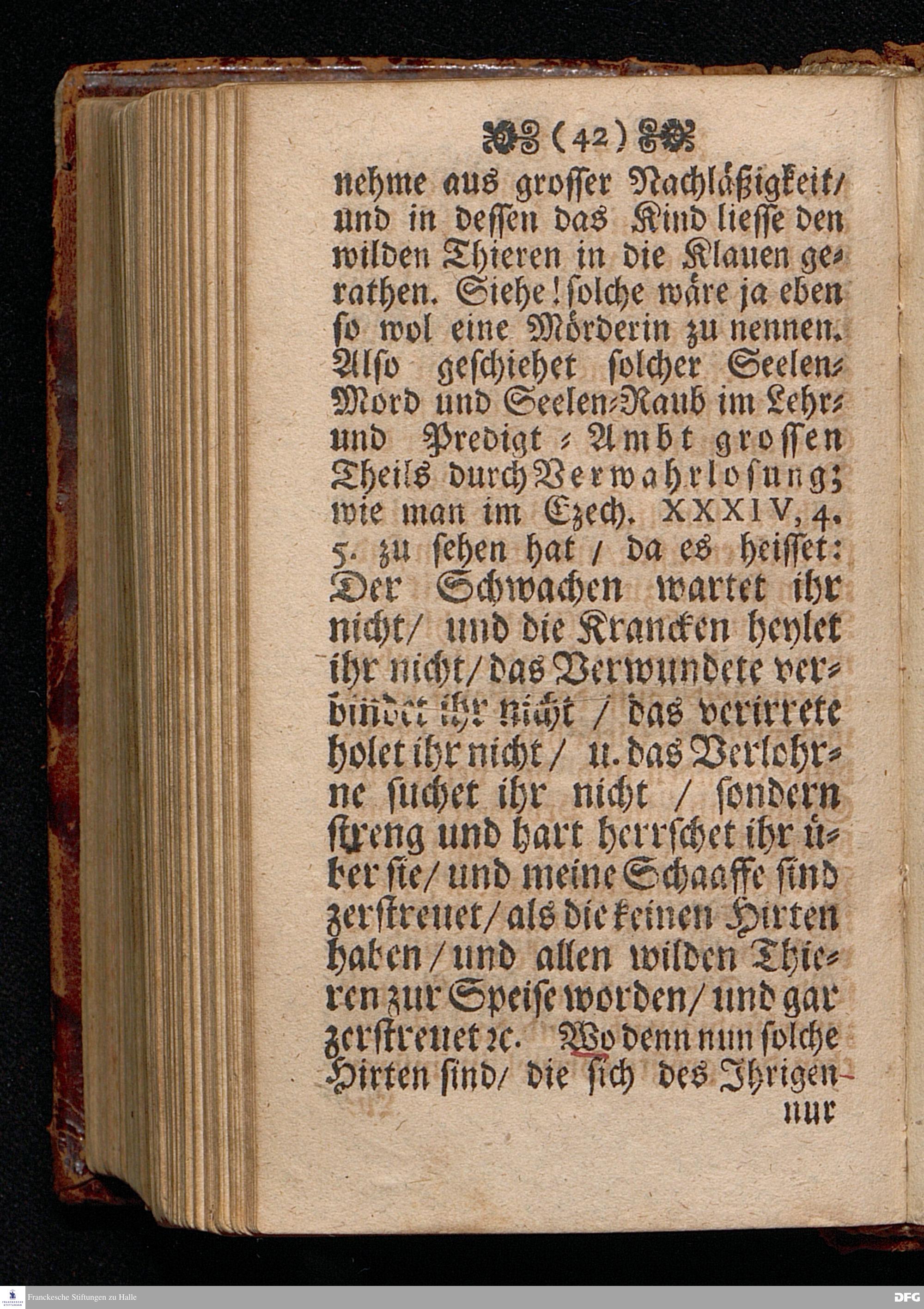 Predigt Von den Falschen Propheten / Uber das Evangelium Matth.VII, Vers. 15--23. Am 8. Sonntag nach Trinitatis Anno 1698. In der St.Georgen=Kirche zu Glaucha an Halle gehalten / Und nunmehro zum dritten mal herausgegeben / von M. August Hermann Francken / SS.Theol.Gr.& OO.LL.P.P.Ord.& P.Glauch. HALLE / Druckts Christian Henckel / Univers.Buchdr.J.J.C. 1699.