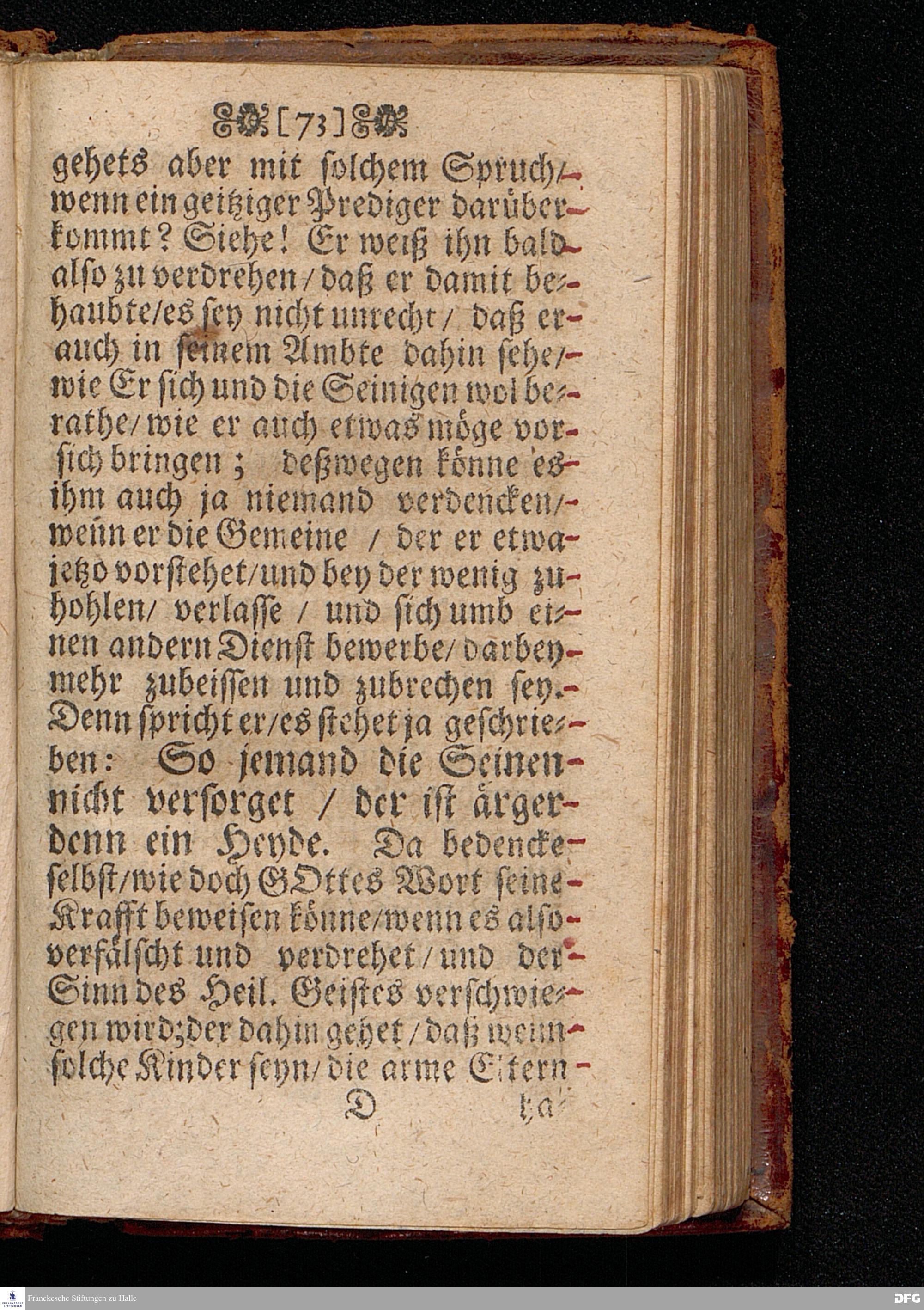 Predigt Von den Falschen Propheten / Uber das Evangelium Matth.VII, Vers. 15--23. Am 8. Sonntag nach Trinitatis Anno 1698. In der St.Georgen=Kirche zu Glaucha an Halle gehalten / Und nunmehro zum dritten mal herausgegeben / von M. August Hermann Francken / SS.Theol.Gr.& OO.LL.P.P.Ord.& P.Glauch. HALLE / Druckts Christian Henckel / Univers.Buchdr.J.J.C. 1699.