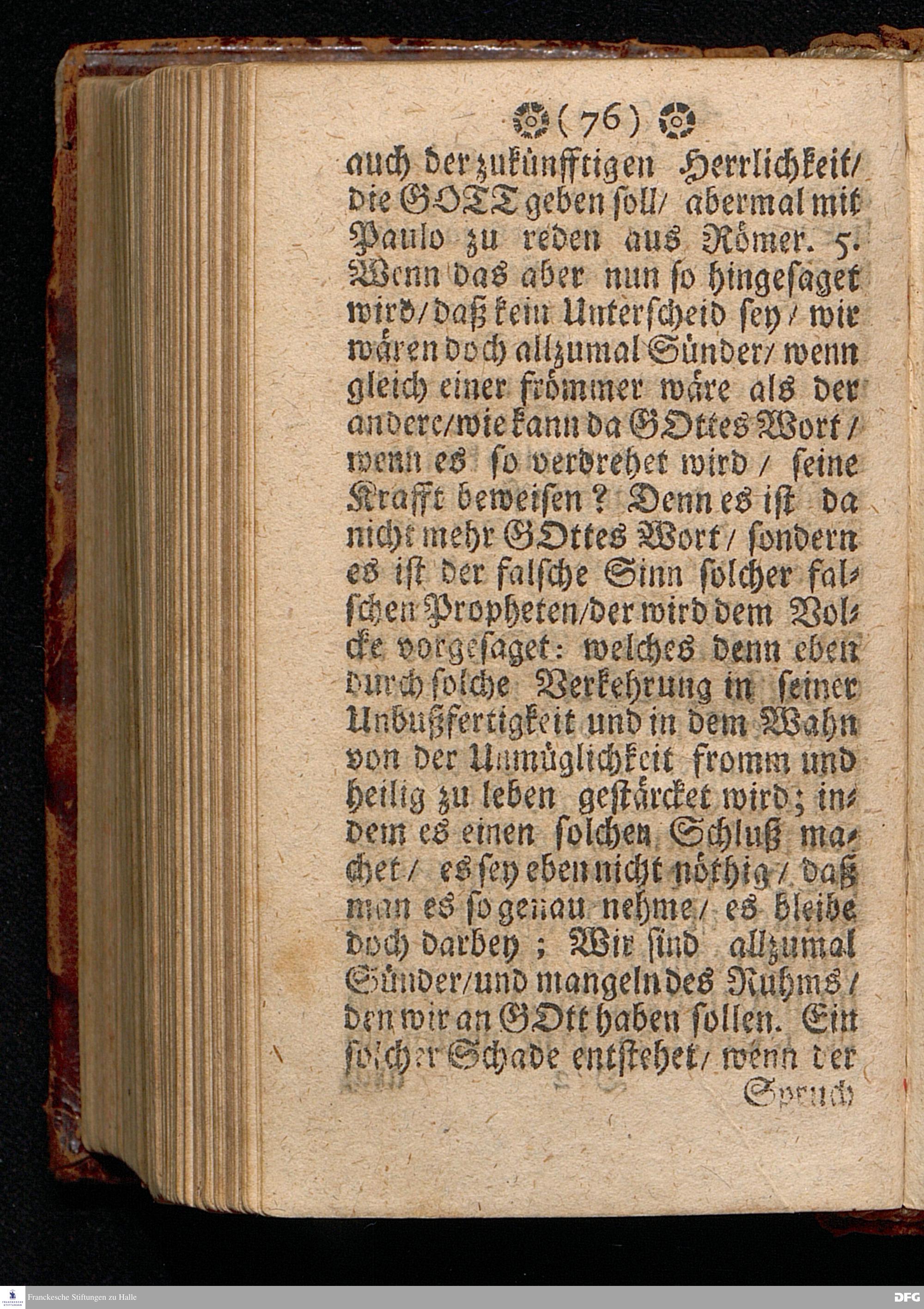 Predigt Von den Falschen Propheten / Uber das Evangelium Matth.VII, Vers. 15--23. Am 8. Sonntag nach Trinitatis Anno 1698. In der St.Georgen=Kirche zu Glaucha an Halle gehalten / Und nunmehro zum dritten mal herausgegeben / von M. August Hermann Francken / SS.Theol.Gr.& OO.LL.P.P.Ord.& P.Glauch. HALLE / Druckts Christian Henckel / Univers.Buchdr.J.J.C. 1699.