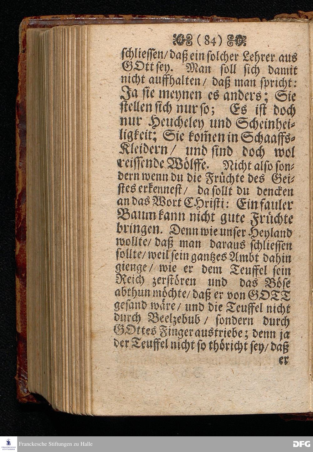 Predigt Von den Falschen Propheten / Uber das Evangelium Matth.VII, Vers. 15--23. Am 8. Sonntag nach Trinitatis Anno 1698. In der St.Georgen=Kirche zu Glaucha an Halle gehalten / Und nunmehro zum dritten mal herausgegeben / von M. August Hermann Francken / SS.Theol.Gr.& OO.LL.P.P.Ord.& P.Glauch. HALLE / Druckts Christian Henckel / Univers.Buchdr.J.J.C. 1699.