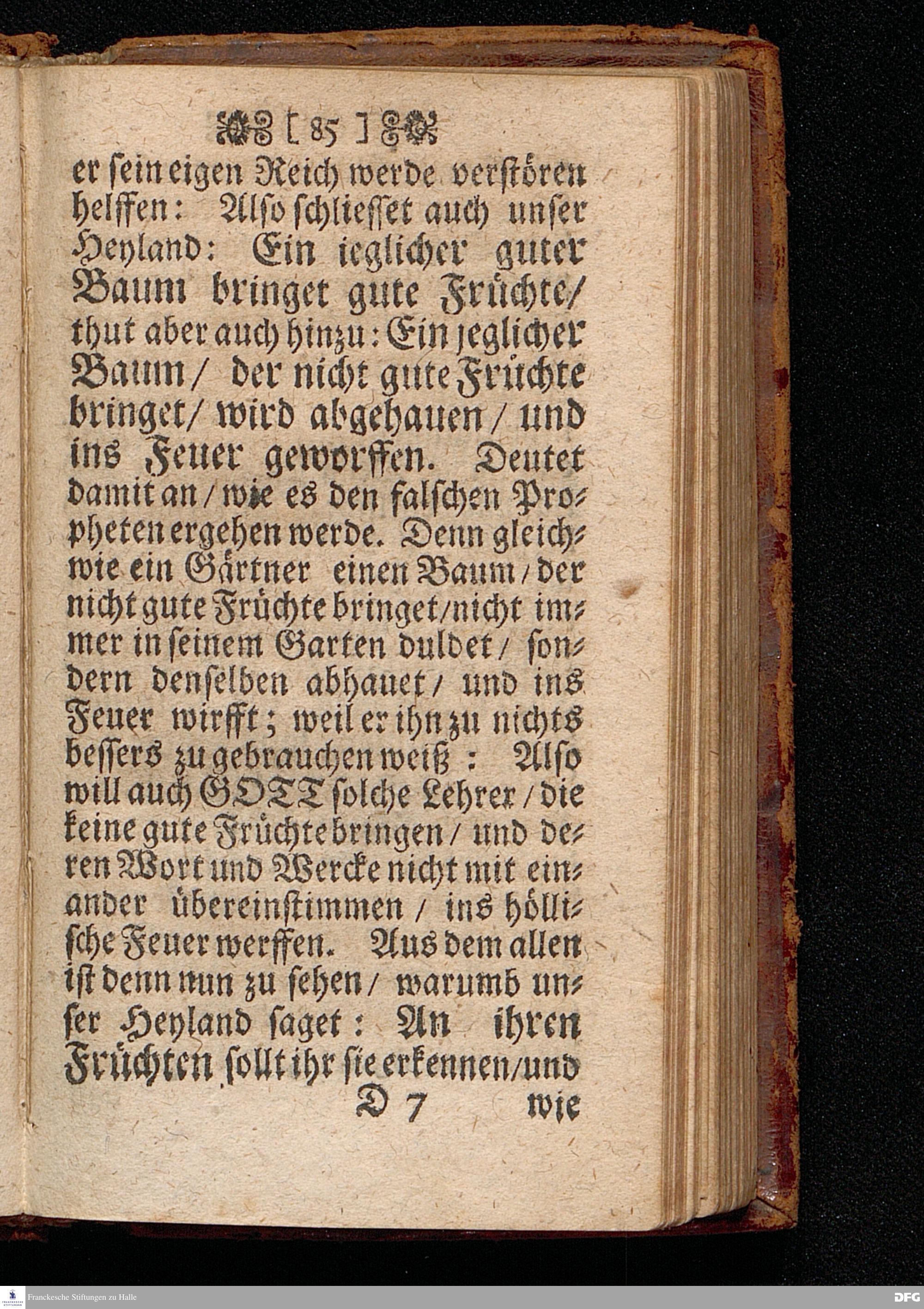 Predigt Von den Falschen Propheten / Uber das Evangelium Matth.VII, Vers. 15--23. Am 8. Sonntag nach Trinitatis Anno 1698. In der St.Georgen=Kirche zu Glaucha an Halle gehalten / Und nunmehro zum dritten mal herausgegeben / von M. August Hermann Francken / SS.Theol.Gr.& OO.LL.P.P.Ord.& P.Glauch. HALLE / Druckts Christian Henckel / Univers.Buchdr.J.J.C. 1699.