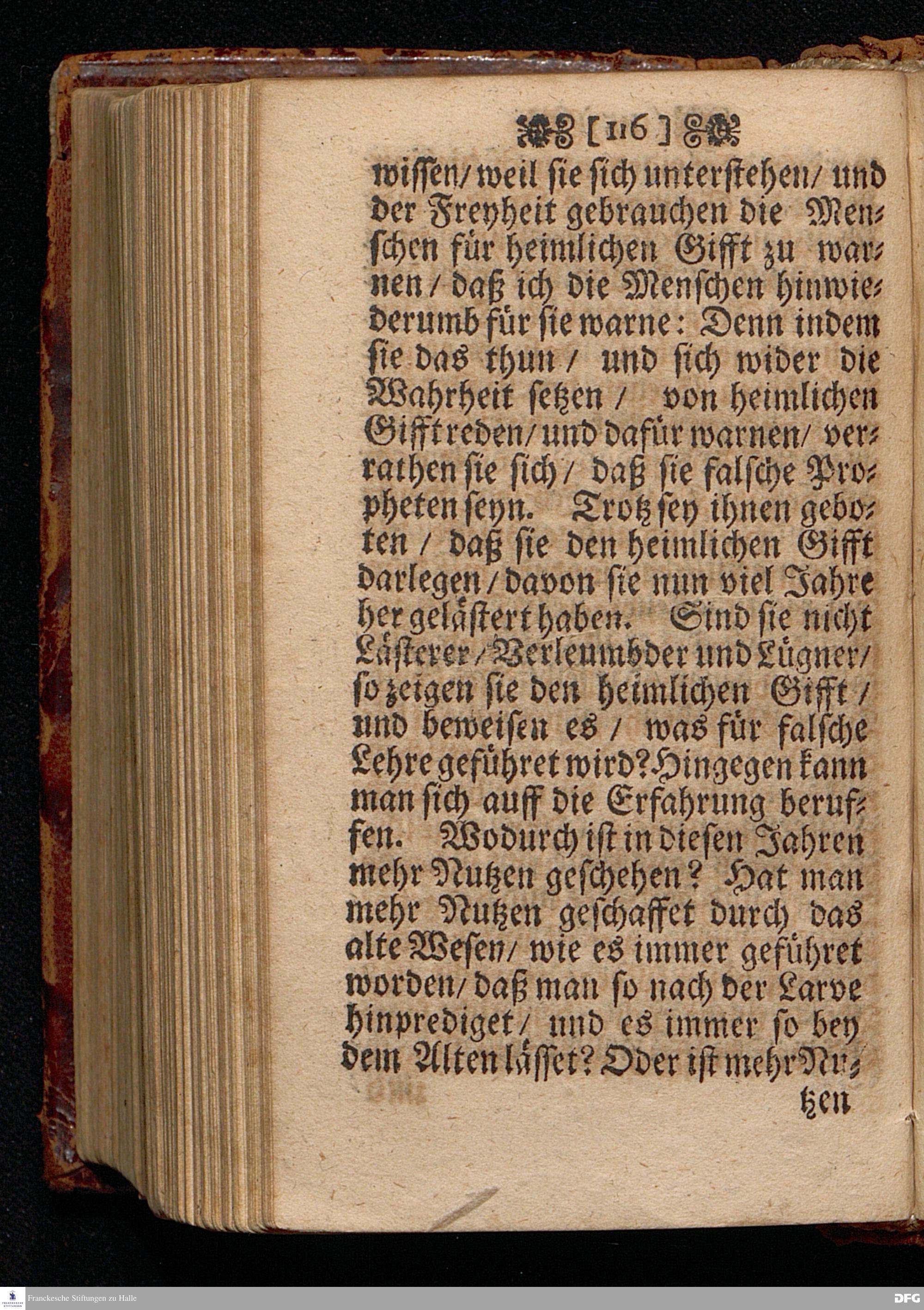 Predigt Von den Falschen Propheten / Uber das Evangelium Matth.VII, Vers. 15--23. Am 8. Sonntag nach Trinitatis Anno 1698. In der St.Georgen=Kirche zu Glaucha an Halle gehalten / Und nunmehro zum dritten mal herausgegeben / von M. August Hermann Francken / SS.Theol.Gr.& OO.LL.P.P.Ord.& P.Glauch. HALLE / Druckts Christian Henckel / Univers.Buchdr.J.J.C. 1699.