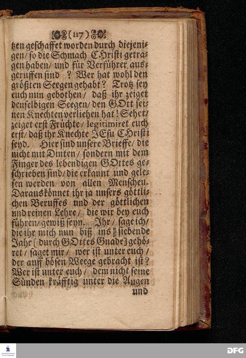 Predigt Von den Falschen Propheten / Uber das Evangelium Matth.VII, Vers. 15--23. Am 8. Sonntag nach Trinitatis Anno 1698. In der St.Georgen=Kirche zu Glaucha an Halle gehalten / Und nunmehro zum dritten mal herausgegeben / von M. August Hermann Francken / SS.Theol.Gr.& OO.LL.P.P.Ord.& P.Glauch. HALLE / Druckts Christian Henckel / Univers.Buchdr.J.J.C. 1699.