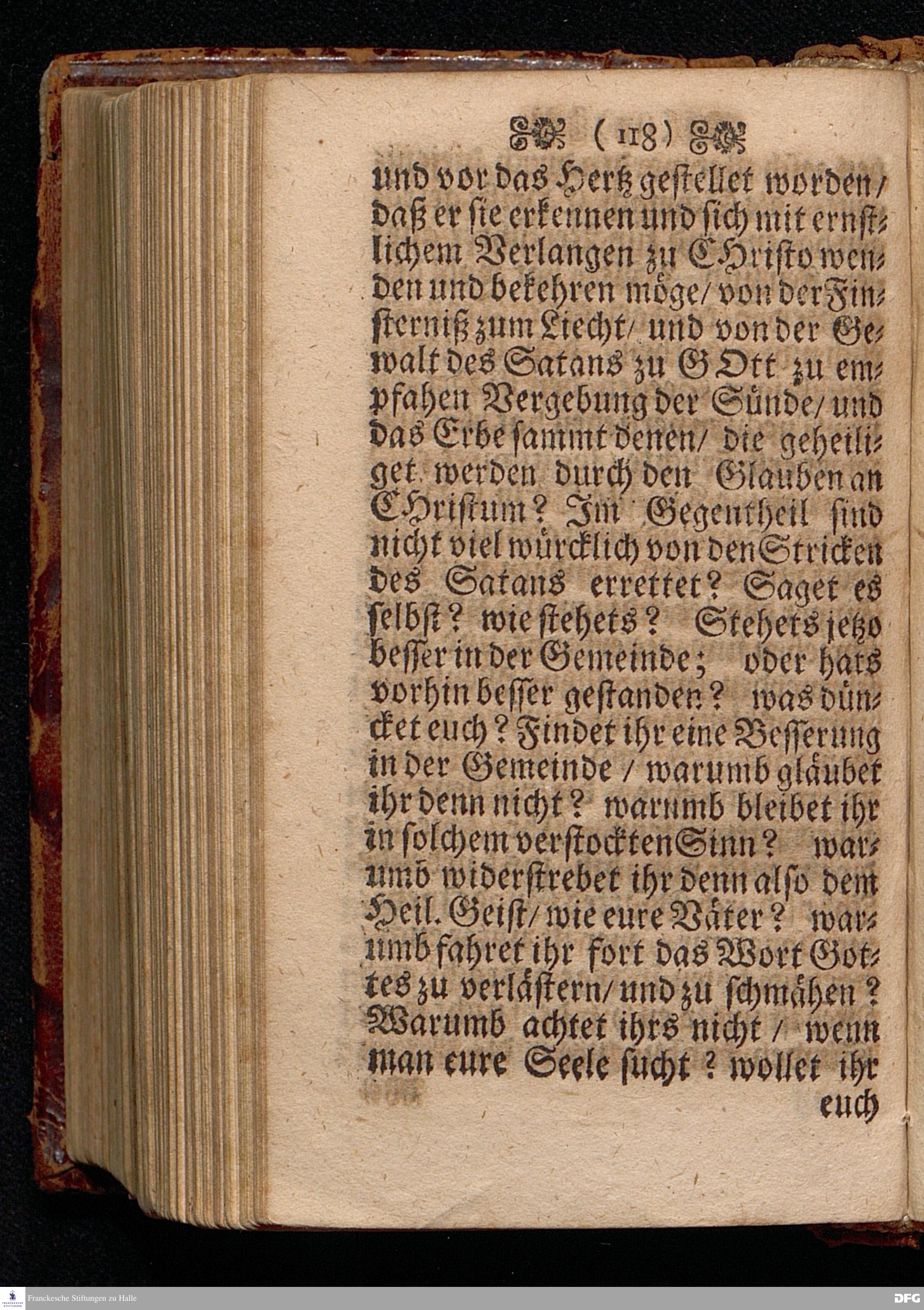 Predigt Von den Falschen Propheten / Uber das Evangelium Matth.VII, Vers. 15--23. Am 8. Sonntag nach Trinitatis Anno 1698. In der St.Georgen=Kirche zu Glaucha an Halle gehalten / Und nunmehro zum dritten mal herausgegeben / von M. August Hermann Francken / SS.Theol.Gr.& OO.LL.P.P.Ord.& P.Glauch. HALLE / Druckts Christian Henckel / Univers.Buchdr.J.J.C. 1699.