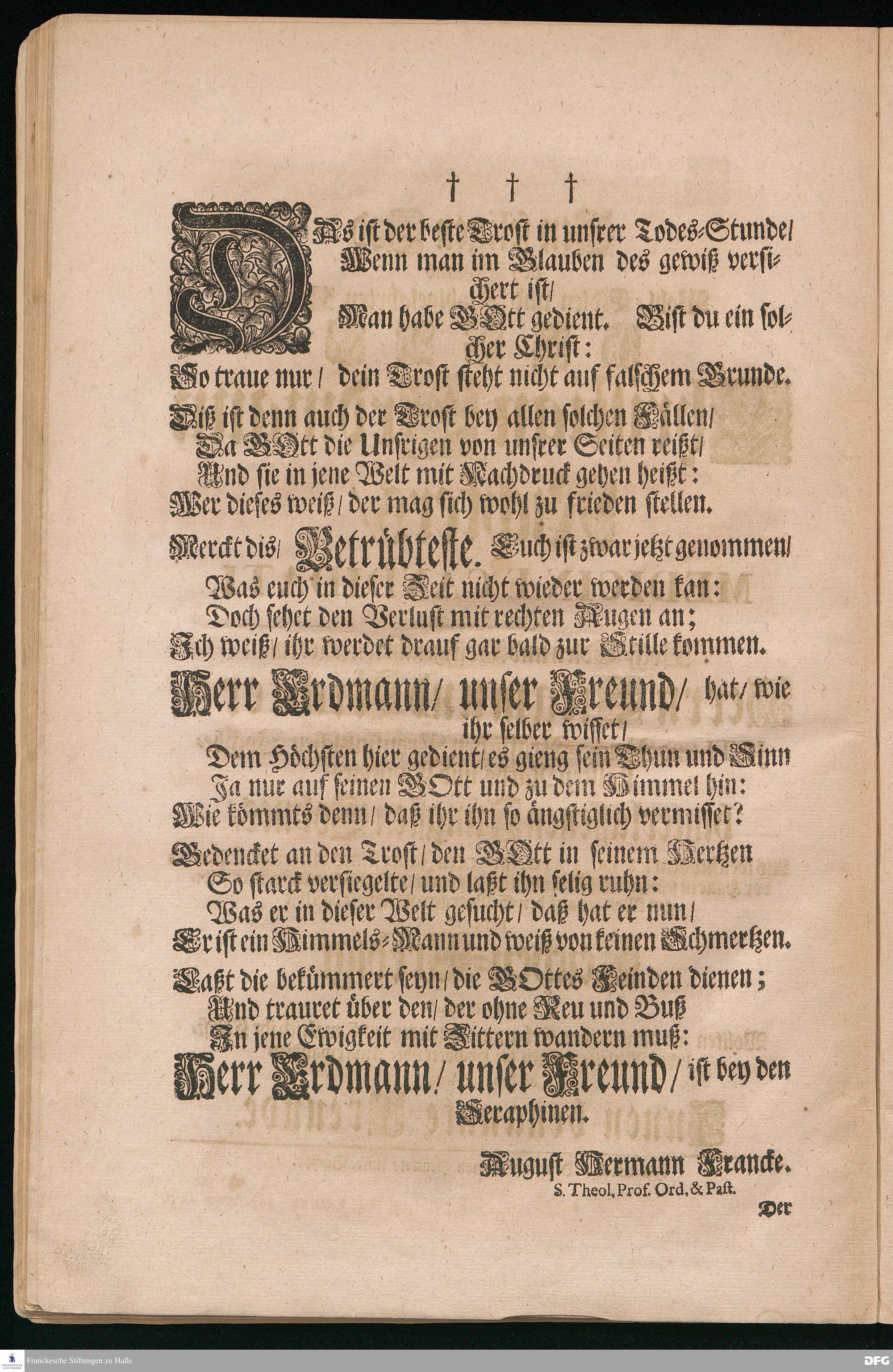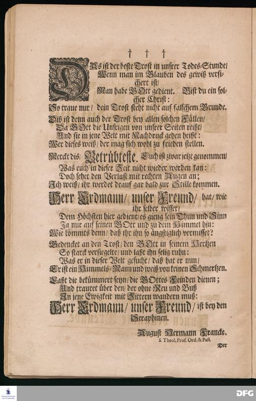 Das ist der beste Trost in unsrer Todes=Stunde / Wenn man im Glauben des gewiß versichert ist /... [Trauergedicht auf den Tod von Christian Erdmann Richter.]