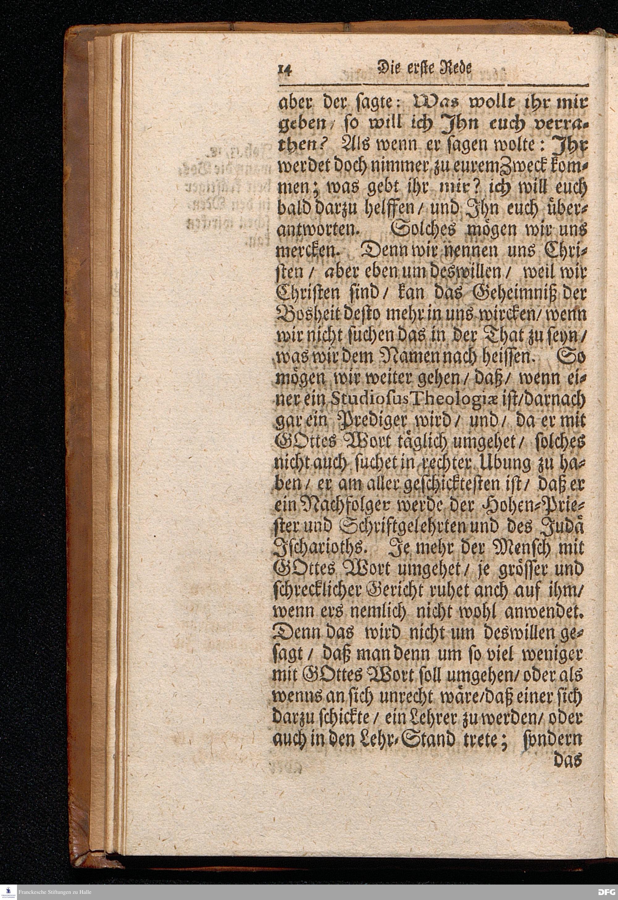 August Hermann Franckens S.Theol.Prof.Ord.und Past. Oeffentliche Reden über die Paßions=Historie / Wie dieselbe vom Evangelisten Marco im 14. und 15. Cap. beschrieben ist / gehalten Von Esto mihi bis Ostern 1712. In dem Wäysenhause zu Glaucha an Halle. HALLE, Gedruckt und verlegt im Wäysenhause, MDCCXV.
