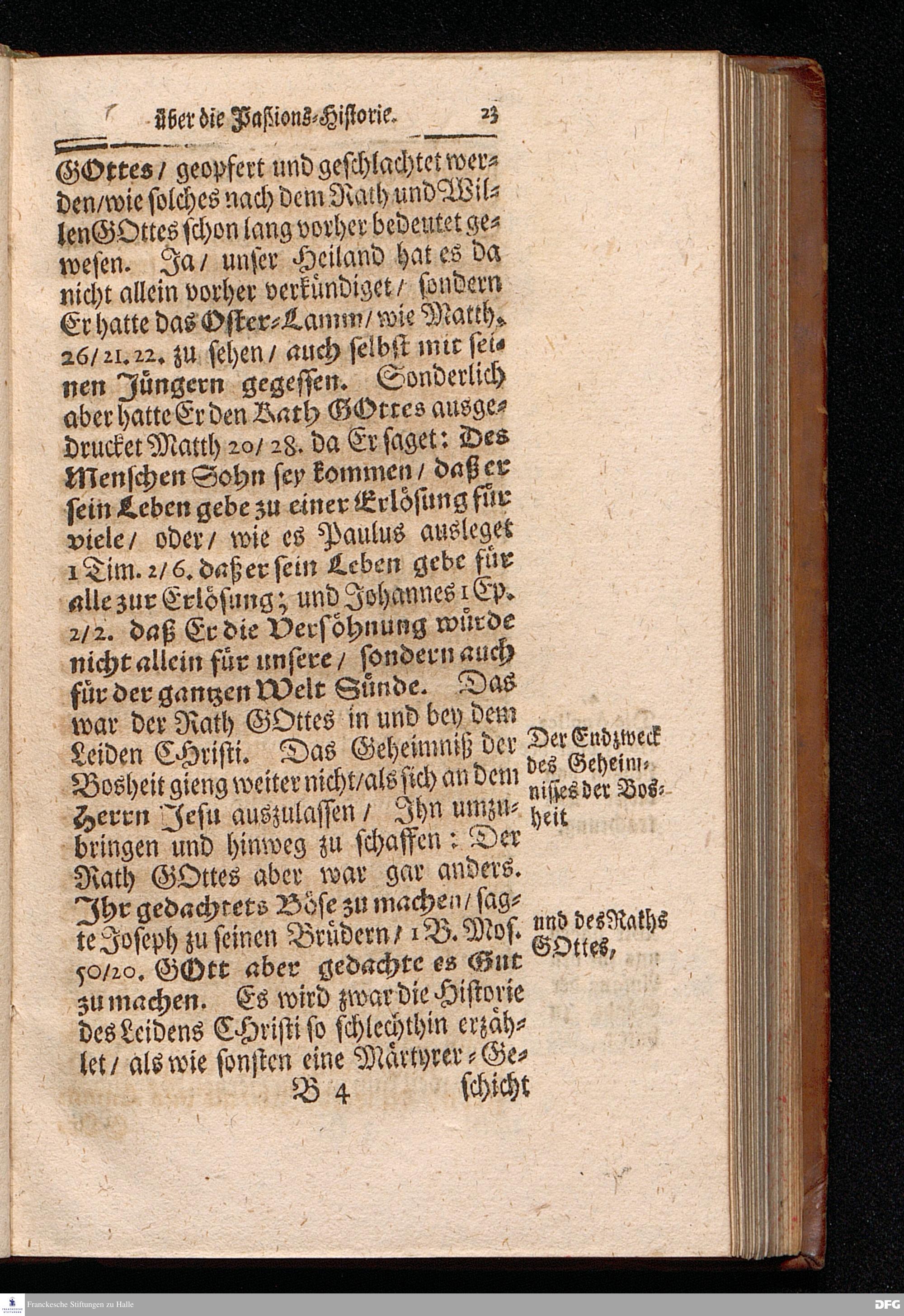August Hermann Franckens S.Theol.Prof.Ord.und Past. Oeffentliche Reden über die Paßions=Historie / Wie dieselbe vom Evangelisten Marco im 14. und 15. Cap. beschrieben ist / gehalten Von Esto mihi bis Ostern 1712. In dem Wäysenhause zu Glaucha an Halle. HALLE, Gedruckt und verlegt im Wäysenhause, MDCCXV.