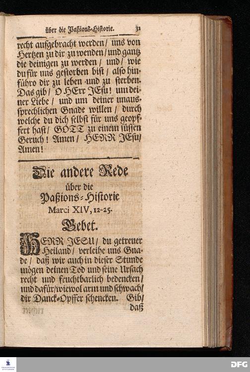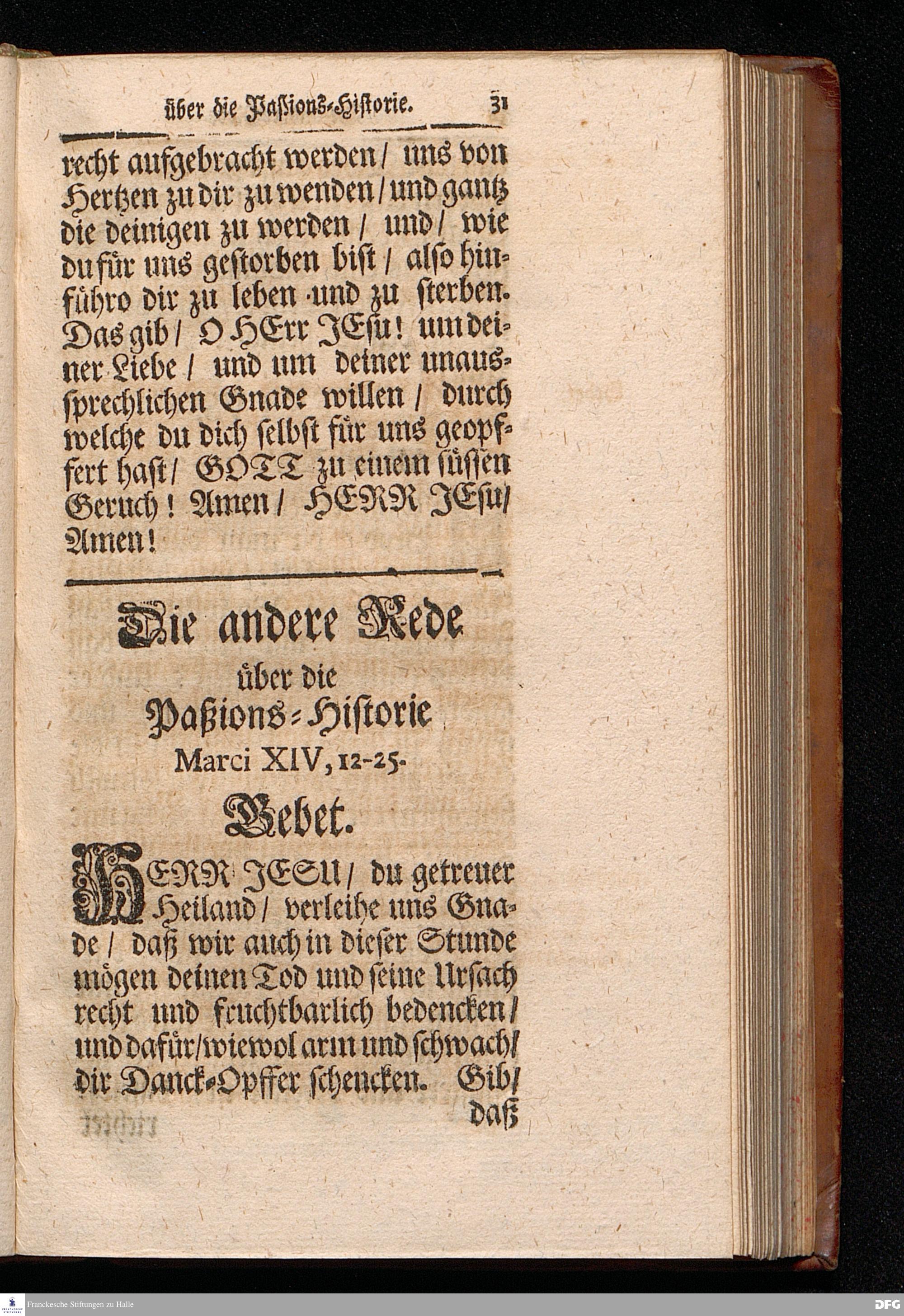 August Hermann Franckens S.Theol.Prof.Ord.und Past. Oeffentliche Reden über die Paßions=Historie / Wie dieselbe vom Evangelisten Marco im 14. und 15. Cap. beschrieben ist / gehalten Von Esto mihi bis Ostern 1712. In dem Wäysenhause zu Glaucha an Halle. HALLE, Gedruckt und verlegt im Wäysenhause, MDCCXV.