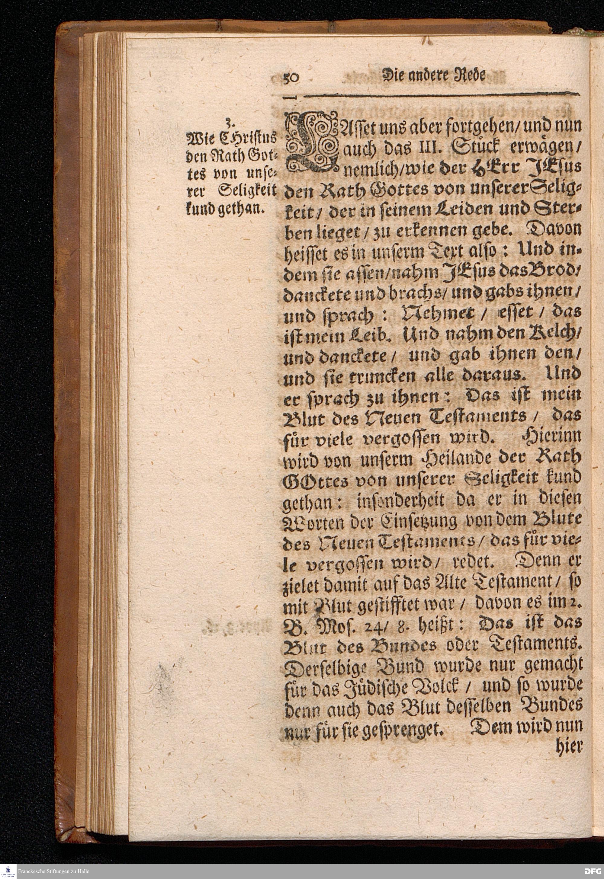 August Hermann Franckens S.Theol.Prof.Ord.und Past. Oeffentliche Reden über die Paßions=Historie / Wie dieselbe vom Evangelisten Marco im 14. und 15. Cap. beschrieben ist / gehalten Von Esto mihi bis Ostern 1712. In dem Wäysenhause zu Glaucha an Halle. HALLE, Gedruckt und verlegt im Wäysenhause, MDCCXV.