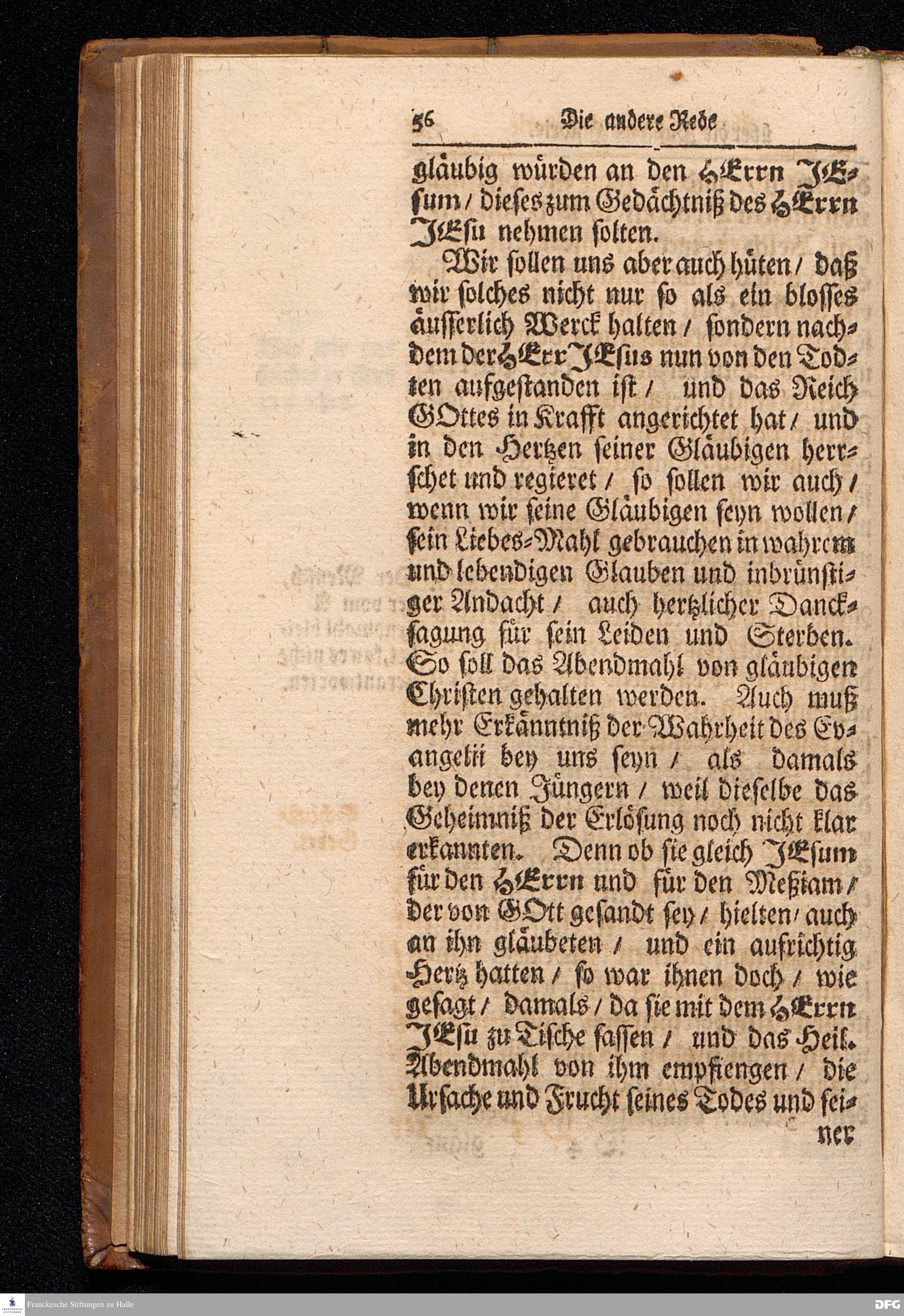 August Hermann Franckens S.Theol.Prof.Ord.und Past. Oeffentliche Reden über die Paßions=Historie / Wie dieselbe vom Evangelisten Marco im 14. und 15. Cap. beschrieben ist / gehalten Von Esto mihi bis Ostern 1712. In dem Wäysenhause zu Glaucha an Halle. HALLE, Gedruckt und verlegt im Wäysenhause, MDCCXV.