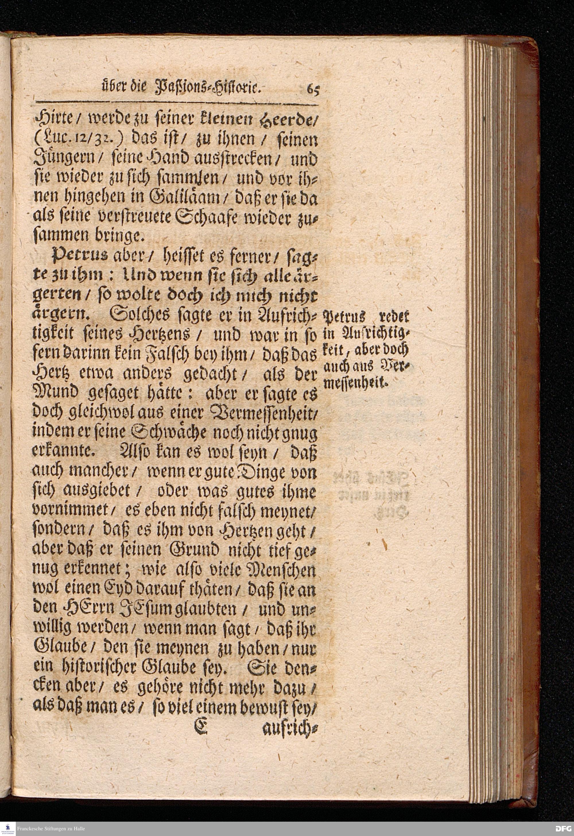 August Hermann Franckens S.Theol.Prof.Ord.und Past. Oeffentliche Reden über die Paßions=Historie / Wie dieselbe vom Evangelisten Marco im 14. und 15. Cap. beschrieben ist / gehalten Von Esto mihi bis Ostern 1712. In dem Wäysenhause zu Glaucha an Halle. HALLE, Gedruckt und verlegt im Wäysenhause, MDCCXV.