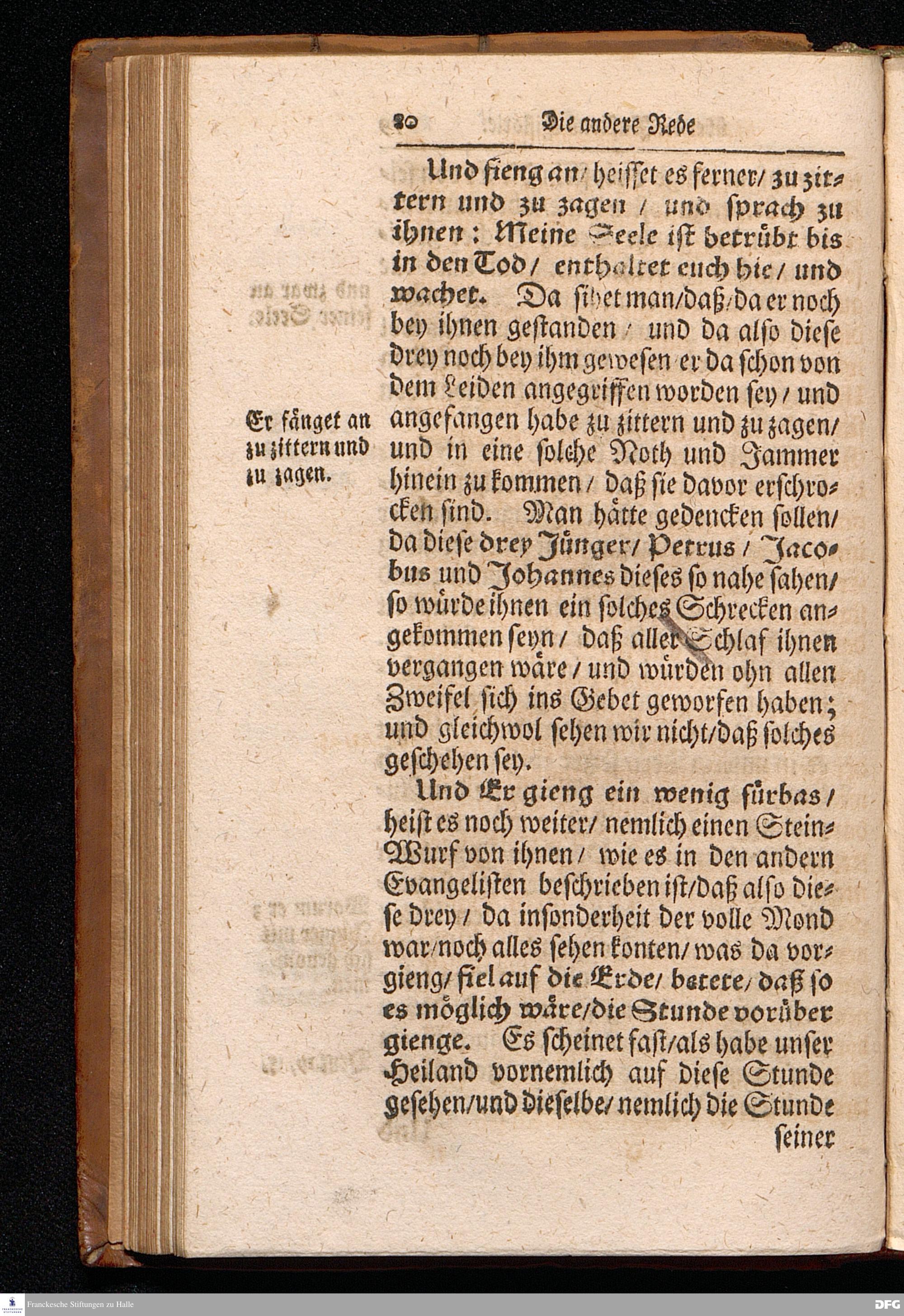 August Hermann Franckens S.Theol.Prof.Ord.und Past. Oeffentliche Reden über die Paßions=Historie / Wie dieselbe vom Evangelisten Marco im 14. und 15. Cap. beschrieben ist / gehalten Von Esto mihi bis Ostern 1712. In dem Wäysenhause zu Glaucha an Halle. HALLE, Gedruckt und verlegt im Wäysenhause, MDCCXV.