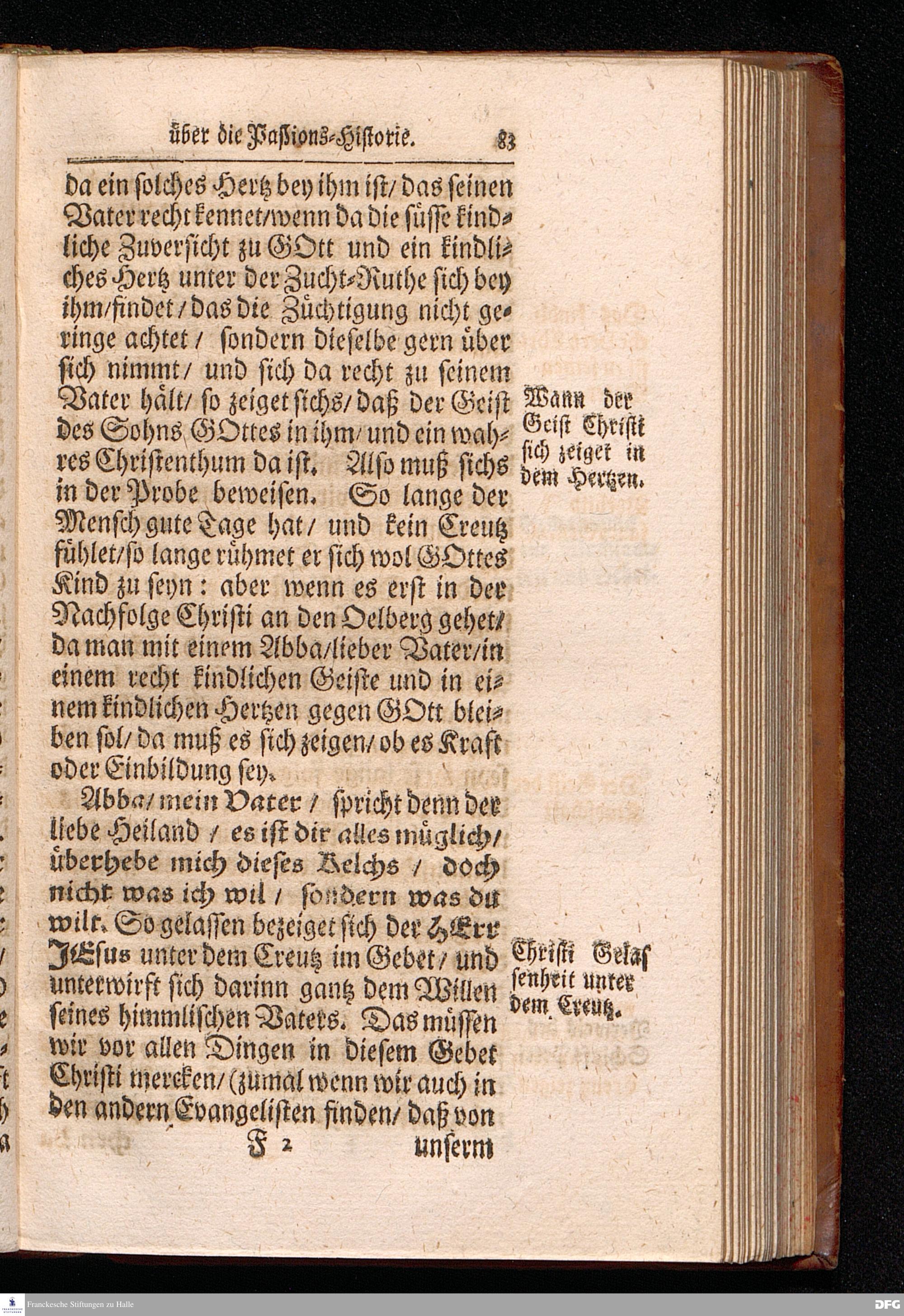 August Hermann Franckens S.Theol.Prof.Ord.und Past. Oeffentliche Reden über die Paßions=Historie / Wie dieselbe vom Evangelisten Marco im 14. und 15. Cap. beschrieben ist / gehalten Von Esto mihi bis Ostern 1712. In dem Wäysenhause zu Glaucha an Halle. HALLE, Gedruckt und verlegt im Wäysenhause, MDCCXV.