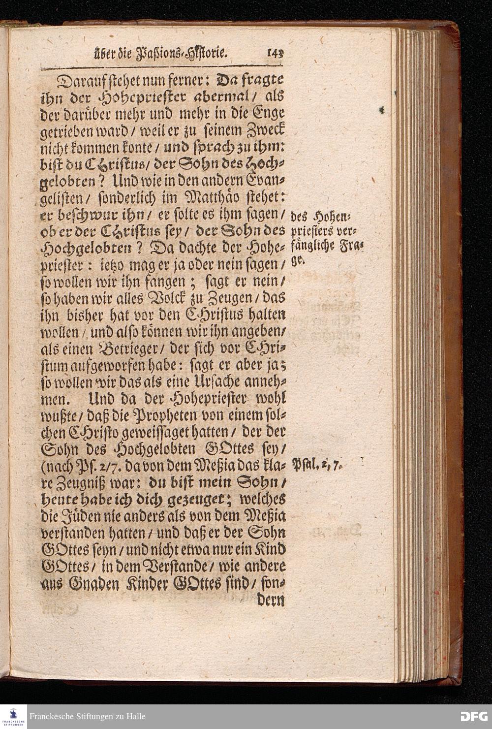 August Hermann Franckens S.Theol.Prof.Ord.und Past. Oeffentliche Reden über die Paßions=Historie / Wie dieselbe vom Evangelisten Marco im 14. und 15. Cap. beschrieben ist / gehalten Von Esto mihi bis Ostern 1712. In dem Wäysenhause zu Glaucha an Halle. HALLE, Gedruckt und verlegt im Wäysenhause, MDCCXV.