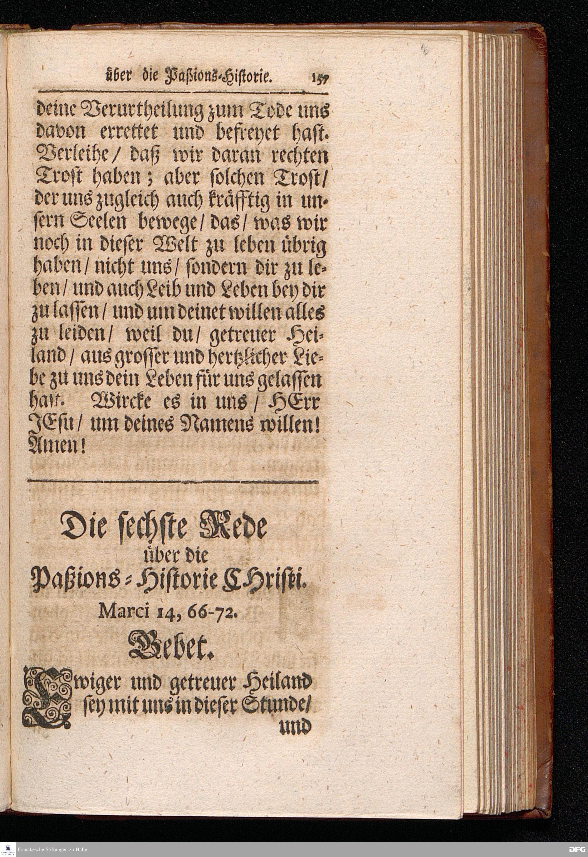 August Hermann Franckens S.Theol.Prof.Ord.und Past. Oeffentliche Reden über die Paßions=Historie / Wie dieselbe vom Evangelisten Marco im 14. und 15. Cap. beschrieben ist / gehalten Von Esto mihi bis Ostern 1712. In dem Wäysenhause zu Glaucha an Halle. HALLE, Gedruckt und verlegt im Wäysenhause, MDCCXV.
