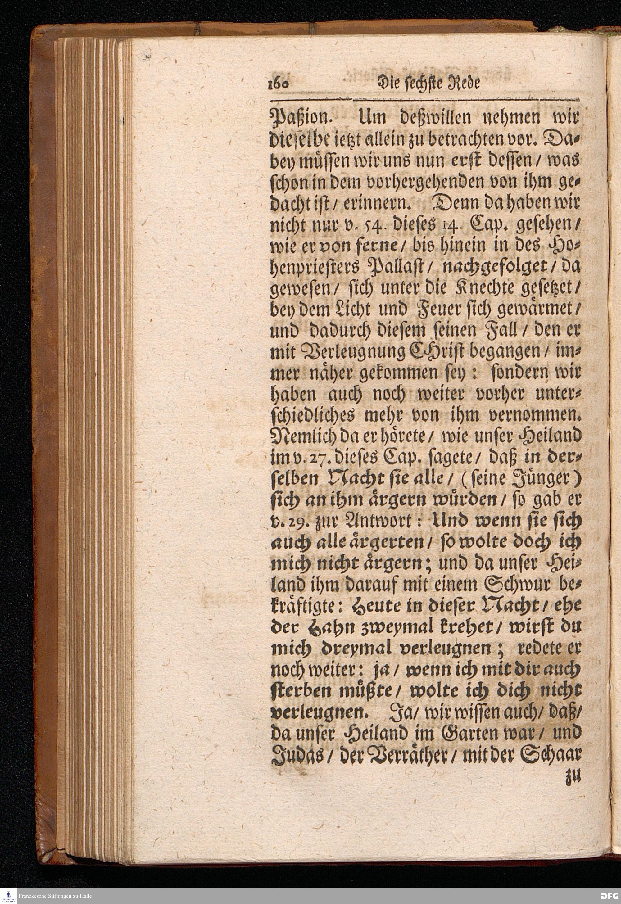 August Hermann Franckens S.Theol.Prof.Ord.und Past. Oeffentliche Reden über die Paßions=Historie / Wie dieselbe vom Evangelisten Marco im 14. und 15. Cap. beschrieben ist / gehalten Von Esto mihi bis Ostern 1712. In dem Wäysenhause zu Glaucha an Halle. HALLE, Gedruckt und verlegt im Wäysenhause, MDCCXV.