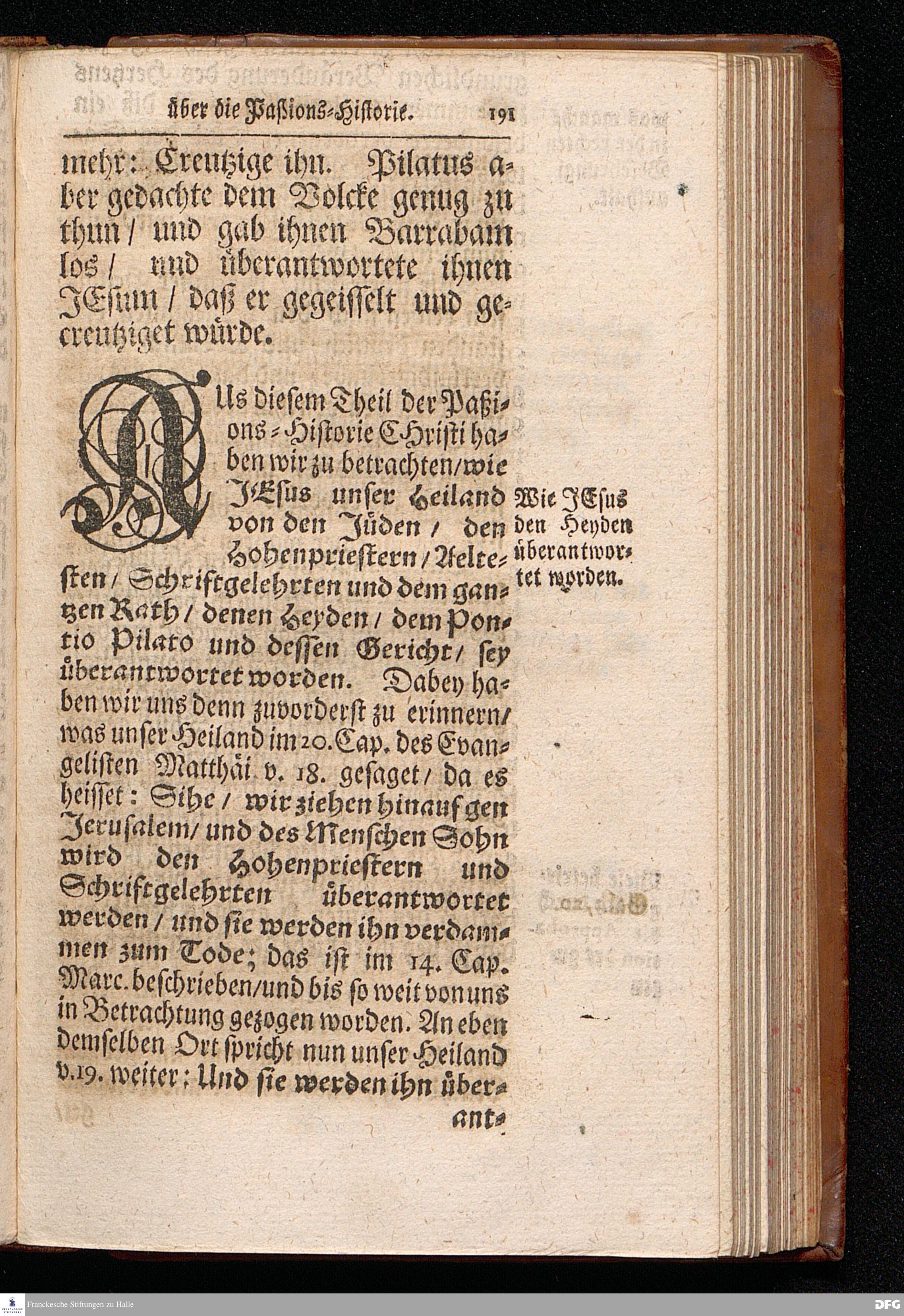August Hermann Franckens S.Theol.Prof.Ord.und Past. Oeffentliche Reden über die Paßions=Historie / Wie dieselbe vom Evangelisten Marco im 14. und 15. Cap. beschrieben ist / gehalten Von Esto mihi bis Ostern 1712. In dem Wäysenhause zu Glaucha an Halle. HALLE, Gedruckt und verlegt im Wäysenhause, MDCCXV.