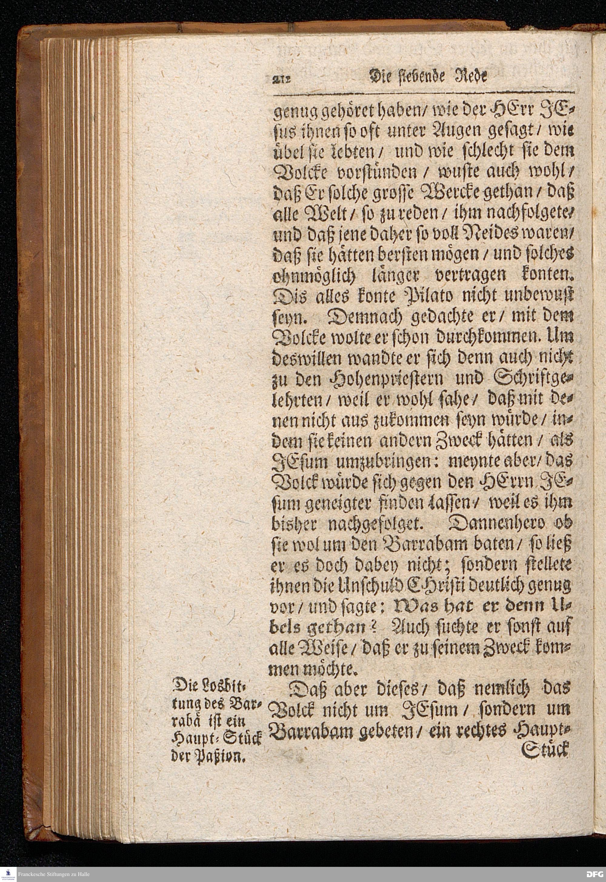August Hermann Franckens S.Theol.Prof.Ord.und Past. Oeffentliche Reden über die Paßions=Historie / Wie dieselbe vom Evangelisten Marco im 14. und 15. Cap. beschrieben ist / gehalten Von Esto mihi bis Ostern 1712. In dem Wäysenhause zu Glaucha an Halle. HALLE, Gedruckt und verlegt im Wäysenhause, MDCCXV.