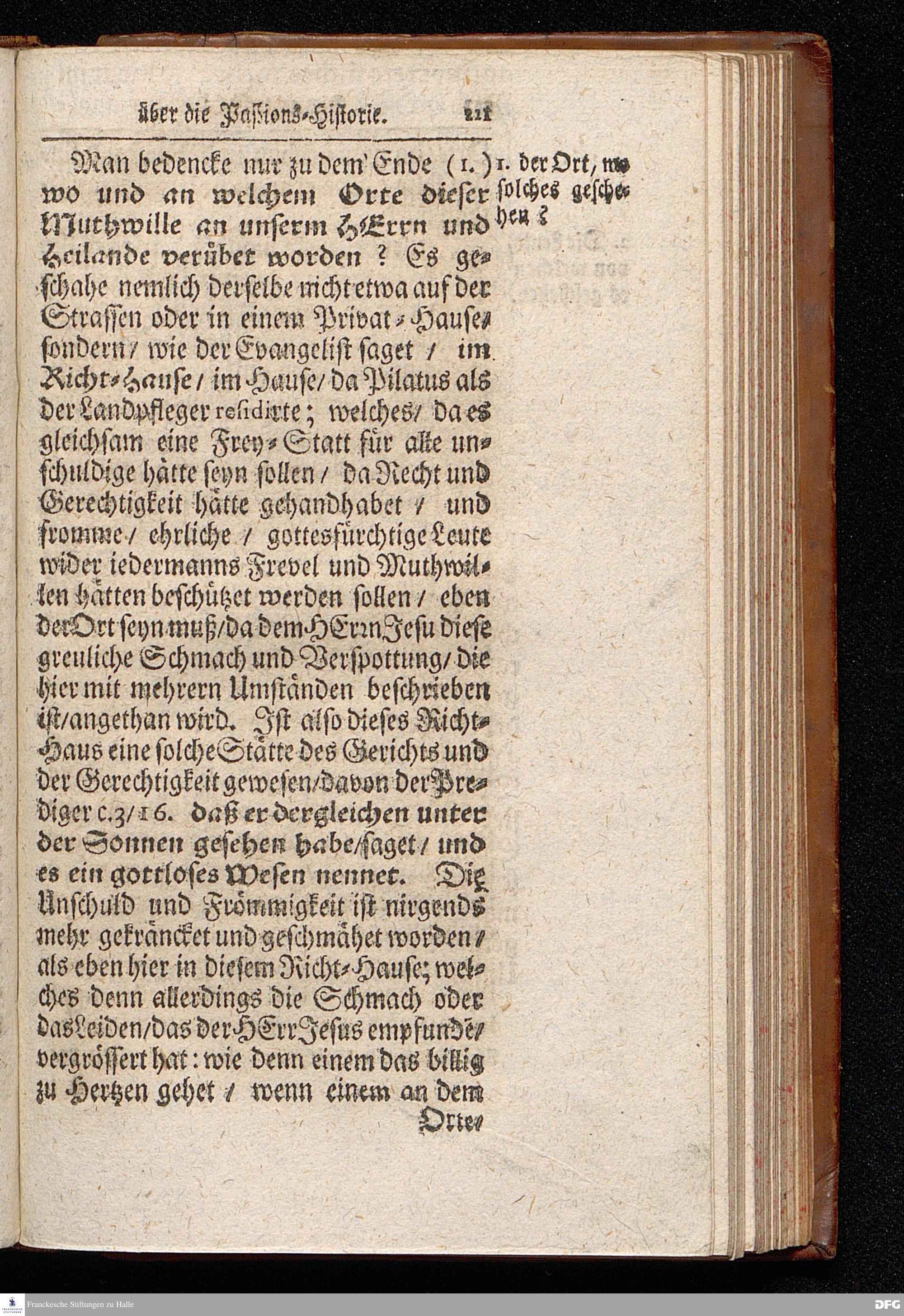 August Hermann Franckens S.Theol.Prof.Ord.und Past. Oeffentliche Reden über die Paßions=Historie / Wie dieselbe vom Evangelisten Marco im 14. und 15. Cap. beschrieben ist / gehalten Von Esto mihi bis Ostern 1712. In dem Wäysenhause zu Glaucha an Halle. HALLE, Gedruckt und verlegt im Wäysenhause, MDCCXV.